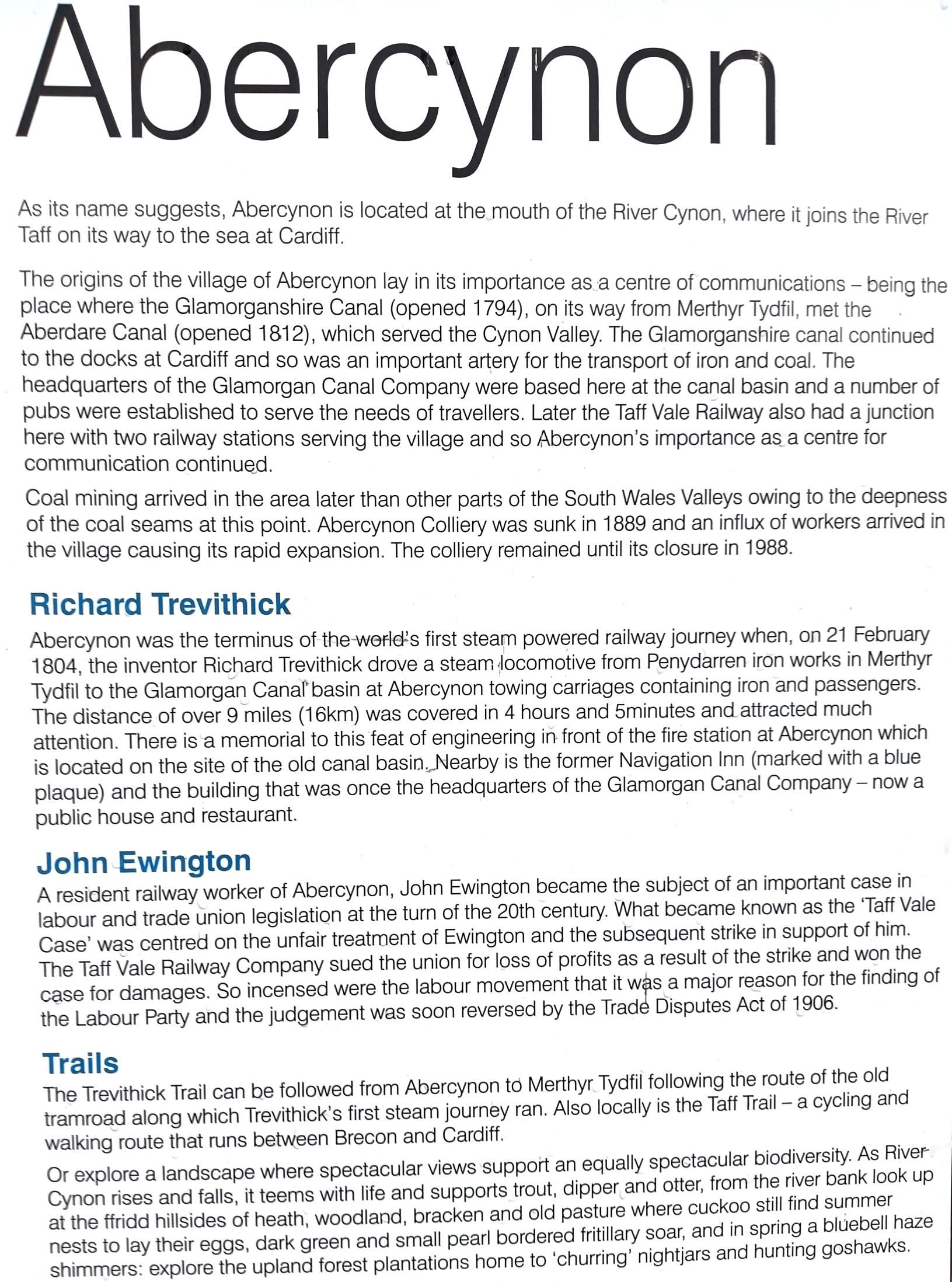 The text that goes with the display at Abercynon (also available in Welsh).