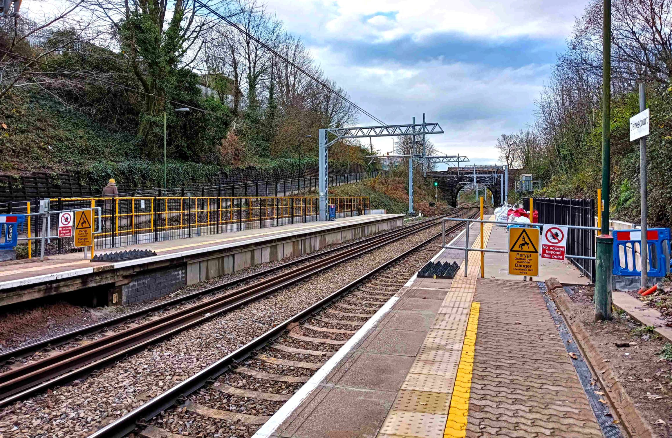 Danescourt, looking towards Radyr, with phoney electrification (earthed) and platform extensions,