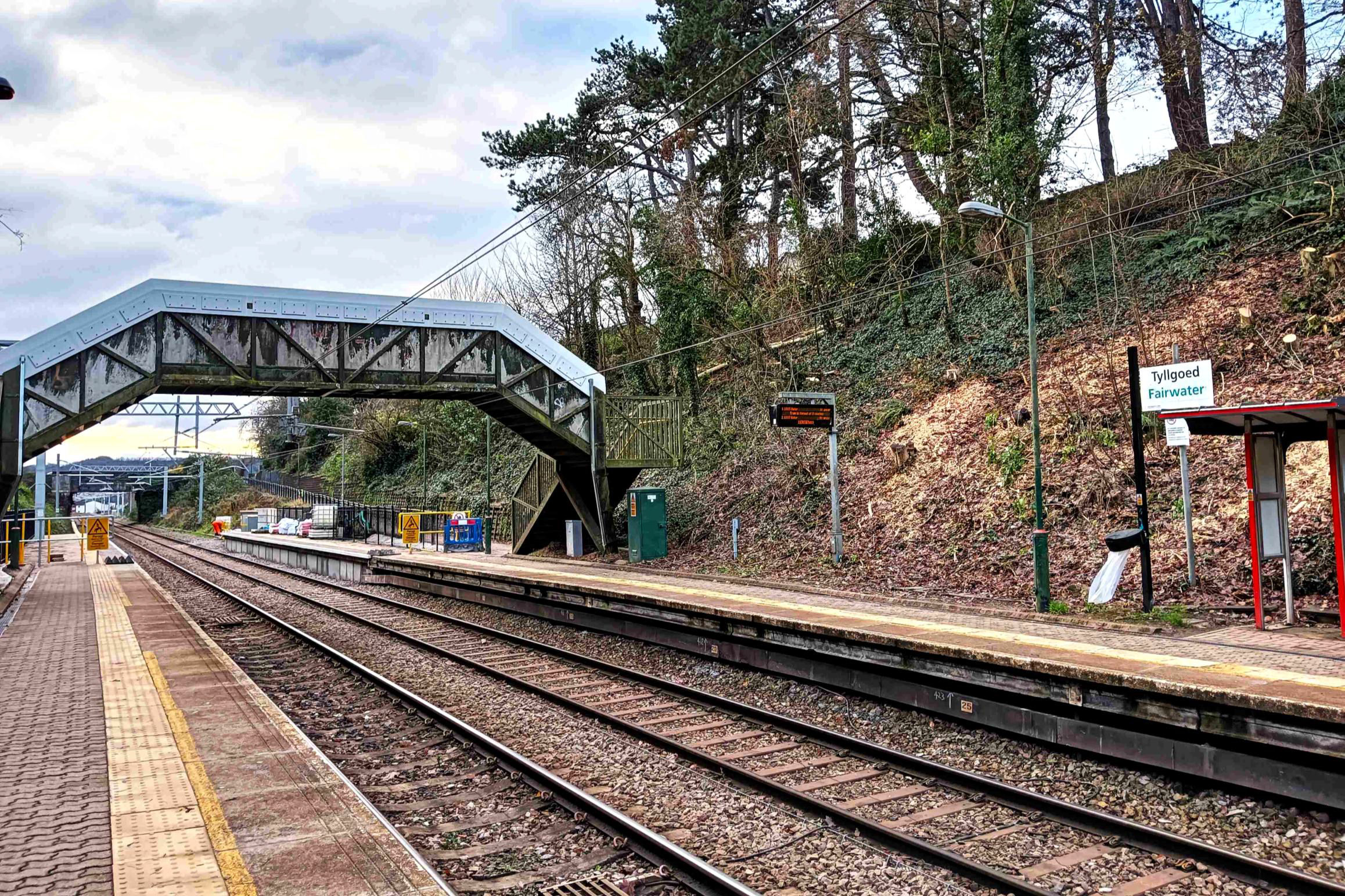 Fairwater looking towards Cardiff Central with more platform extensions and phoney electrification (13 Dec 2023).
