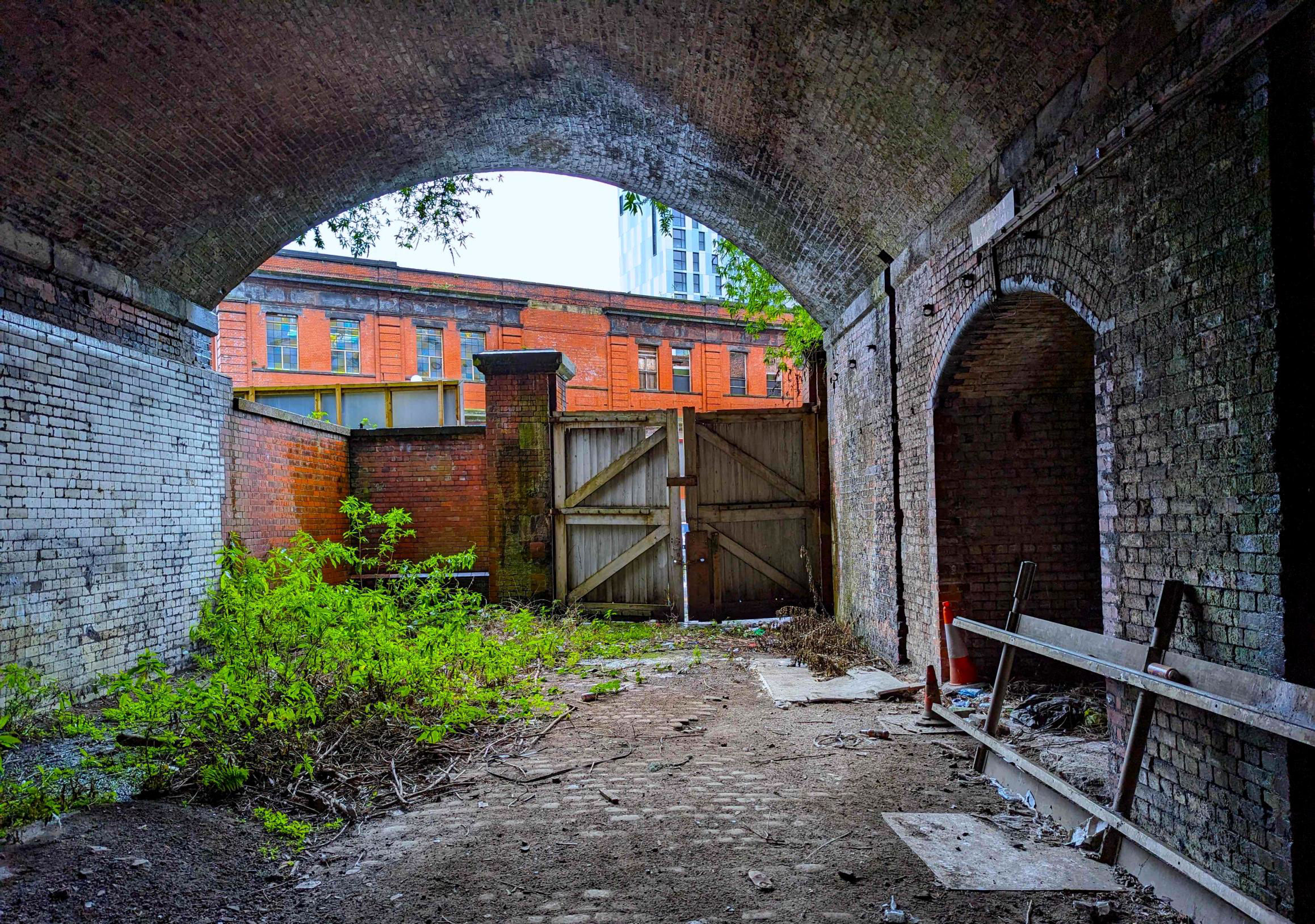 17 members assembled in Fairfield Street next to Piccadilly station under P13 & 14, including Adam Turner, our organiser for the day. We were joined by the station manager, Kyla Thomas and her assistant. Unlocking the enormous wooden doors on Fairfield Street under the bridge that carries the through platforms, she led us into the brick arch area beneath the station.