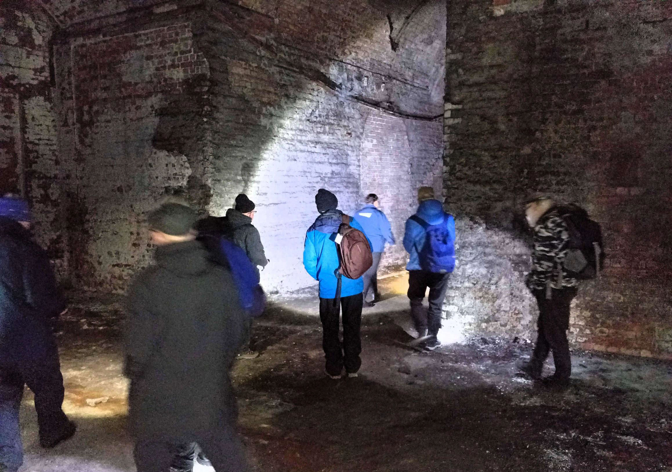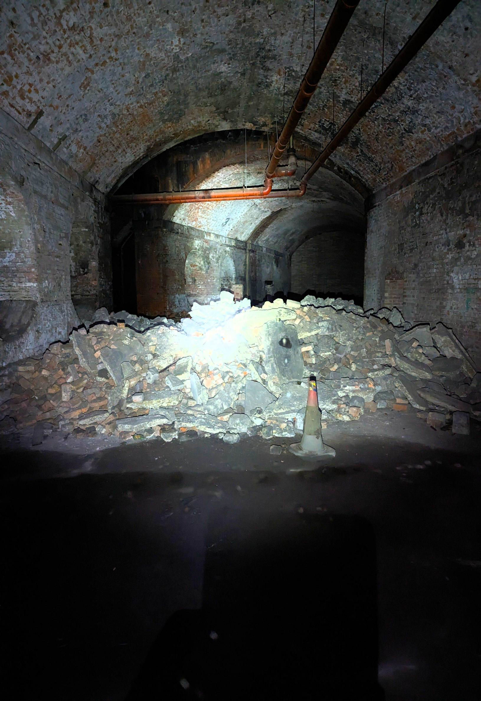 Piccadilly undercroft the need for torches is evident.