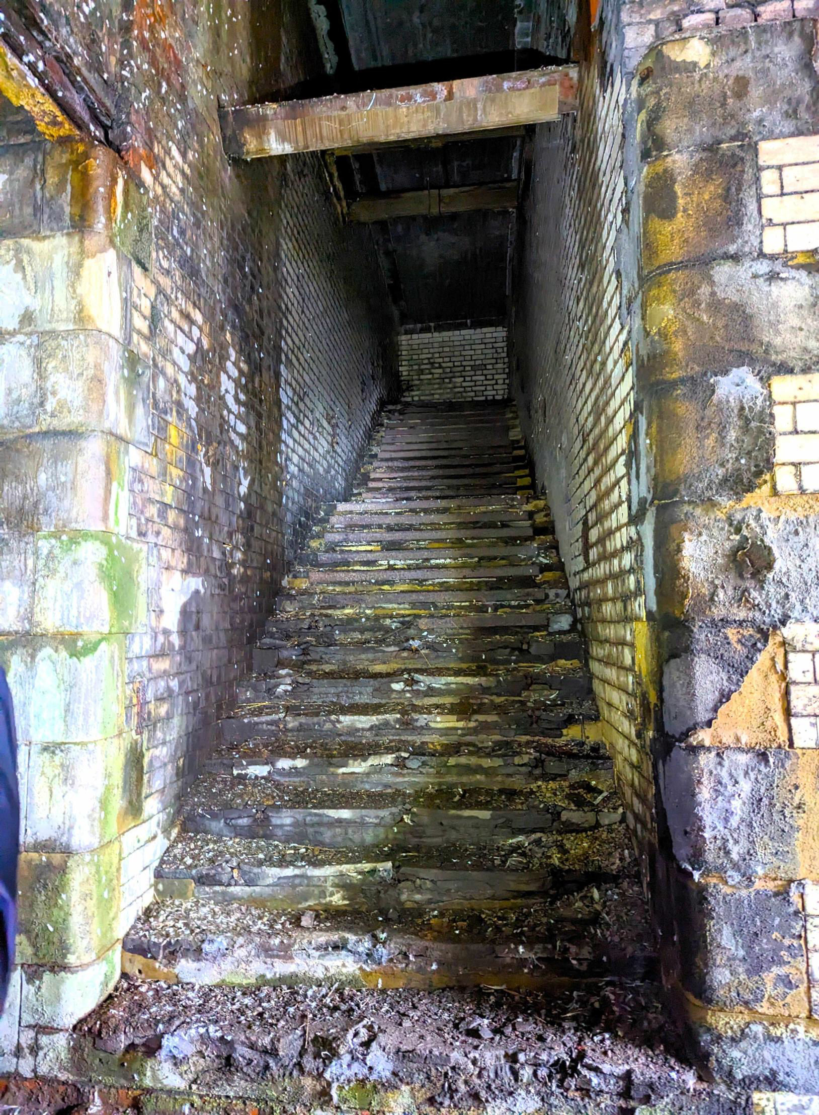 Passengers once used these steps to reach the platforms above.
