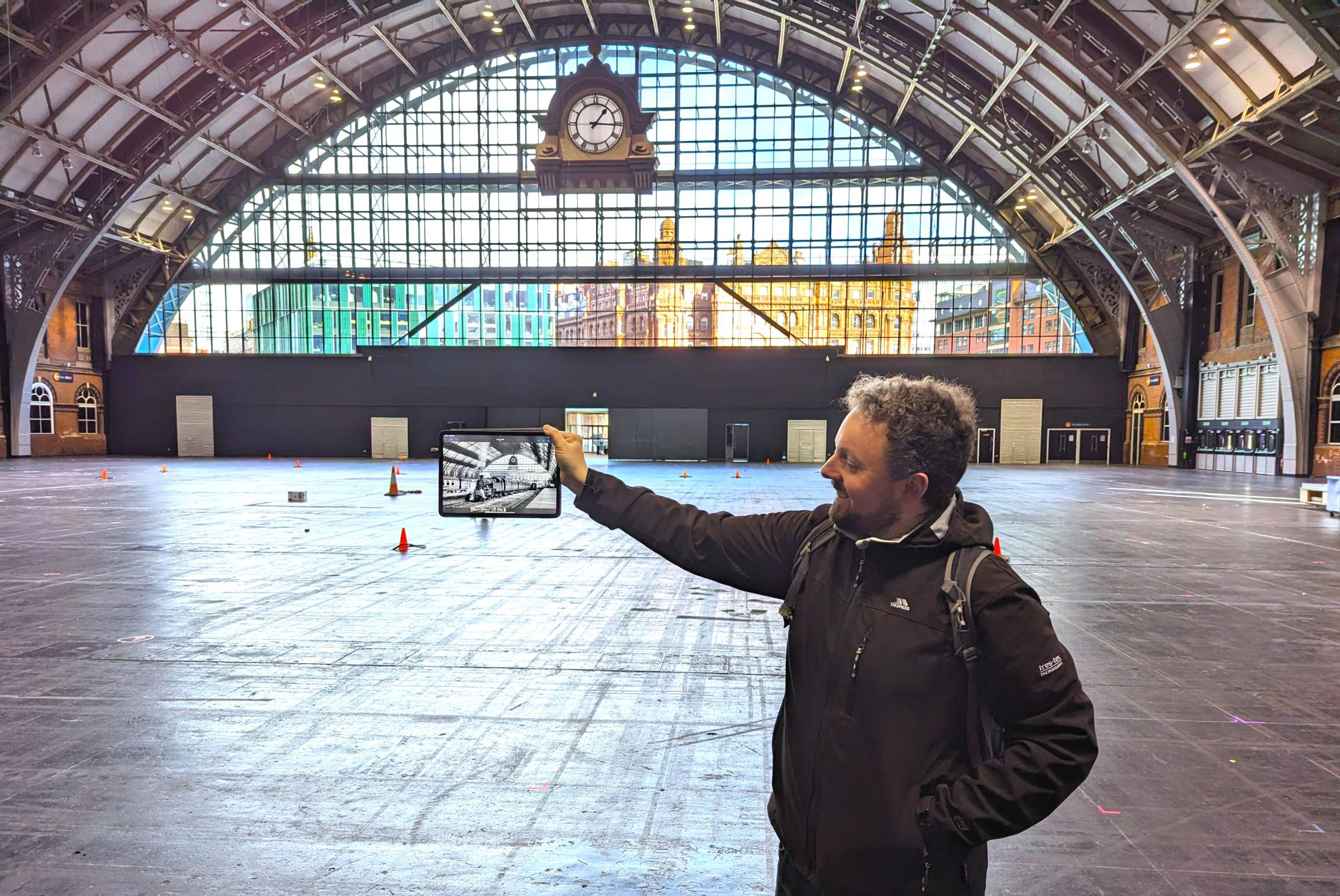 The former buffer stops end of Central station; the clock seems to be the same one shown in the image Adam is holding.