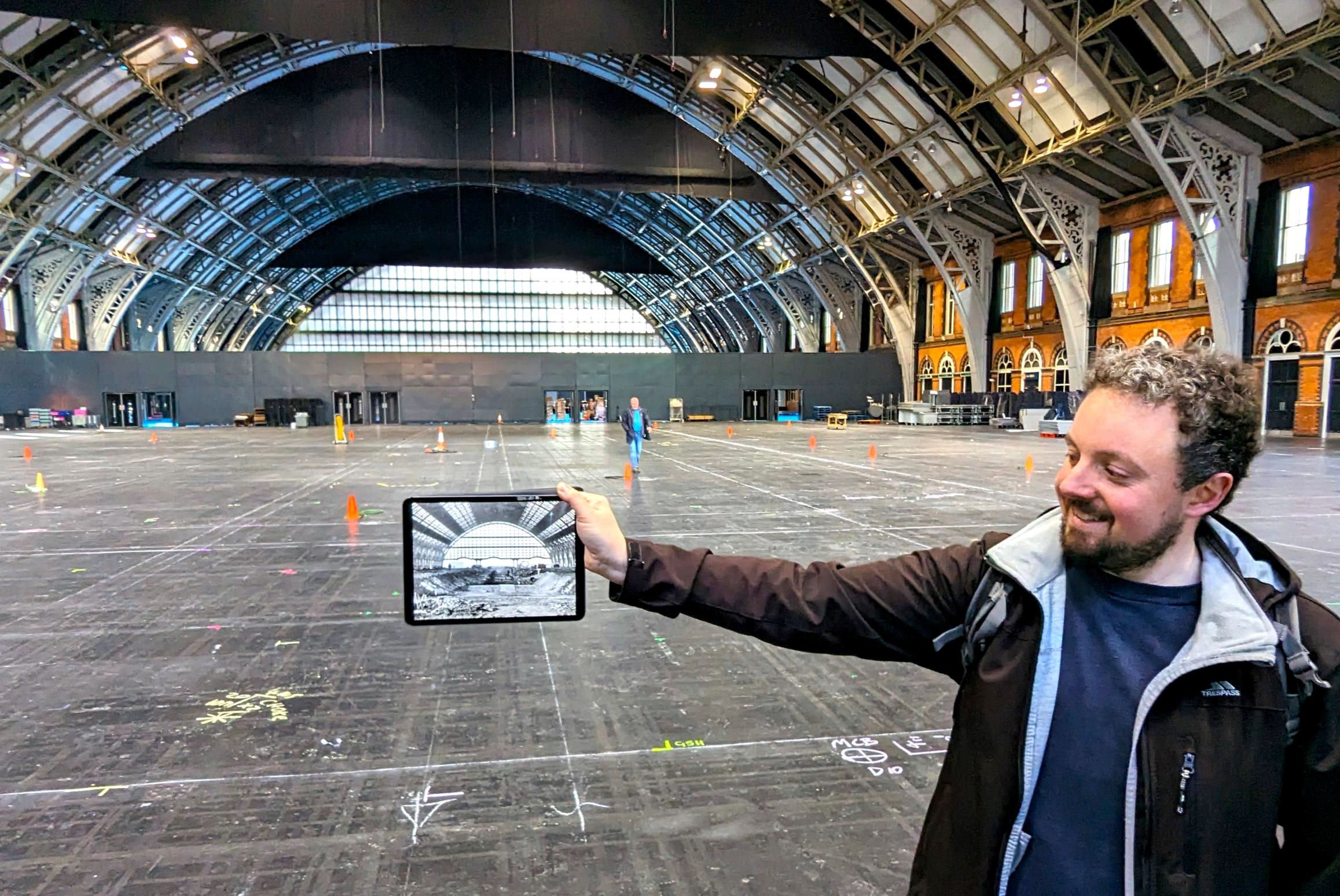 The London end of the former train shed; the tablet photo shows work in progress to convert the station into an events centre.
