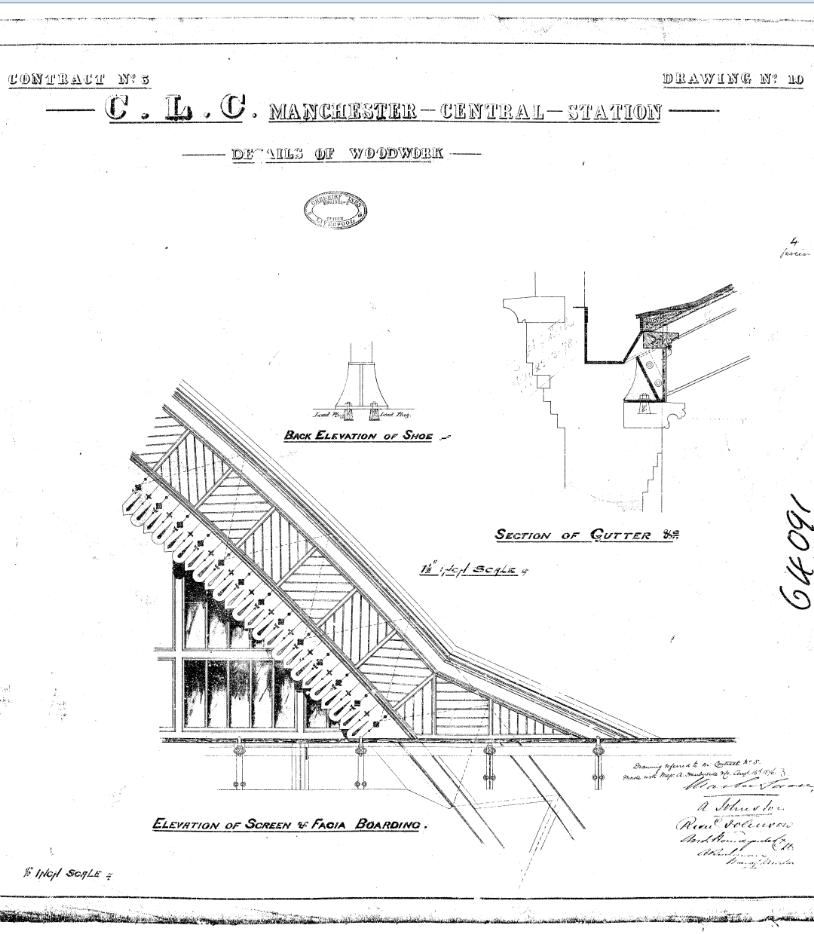 From the Network Rail archives, our group gave Manchester Central a framed copy of this architectural drawing of the train-shed roof valance)