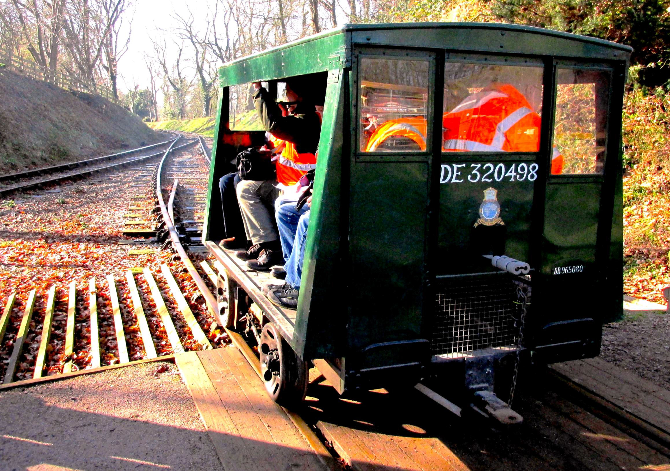 Next was the standard gauge. This was the highlight for many as there are no passenger trains, only occasional shunting demonstrations on selected days with short footplate rides. Green Wickham Trolley DE320498 was used (hence the name 'Wickham Wanderer' tour ... see what we did there ... OK, moving on...). It was built in Ware in 1957 and allocated, with 63 others, to British Rail North Eastern Region. This one lived at Castleton Moor on the Whitby branch and had an upgraded JAP 1323cc twin cylinder engine. By 1994, as DB965080, it was pensioned off engineless from Darlington CE Plant Depot and entered preservation on the Wear Valley Railway, where it acquired a Perkins Engine (for Perkins engine enthusiasts!). It came to Mountsorrel in 2012 for construction of the various railways here.
