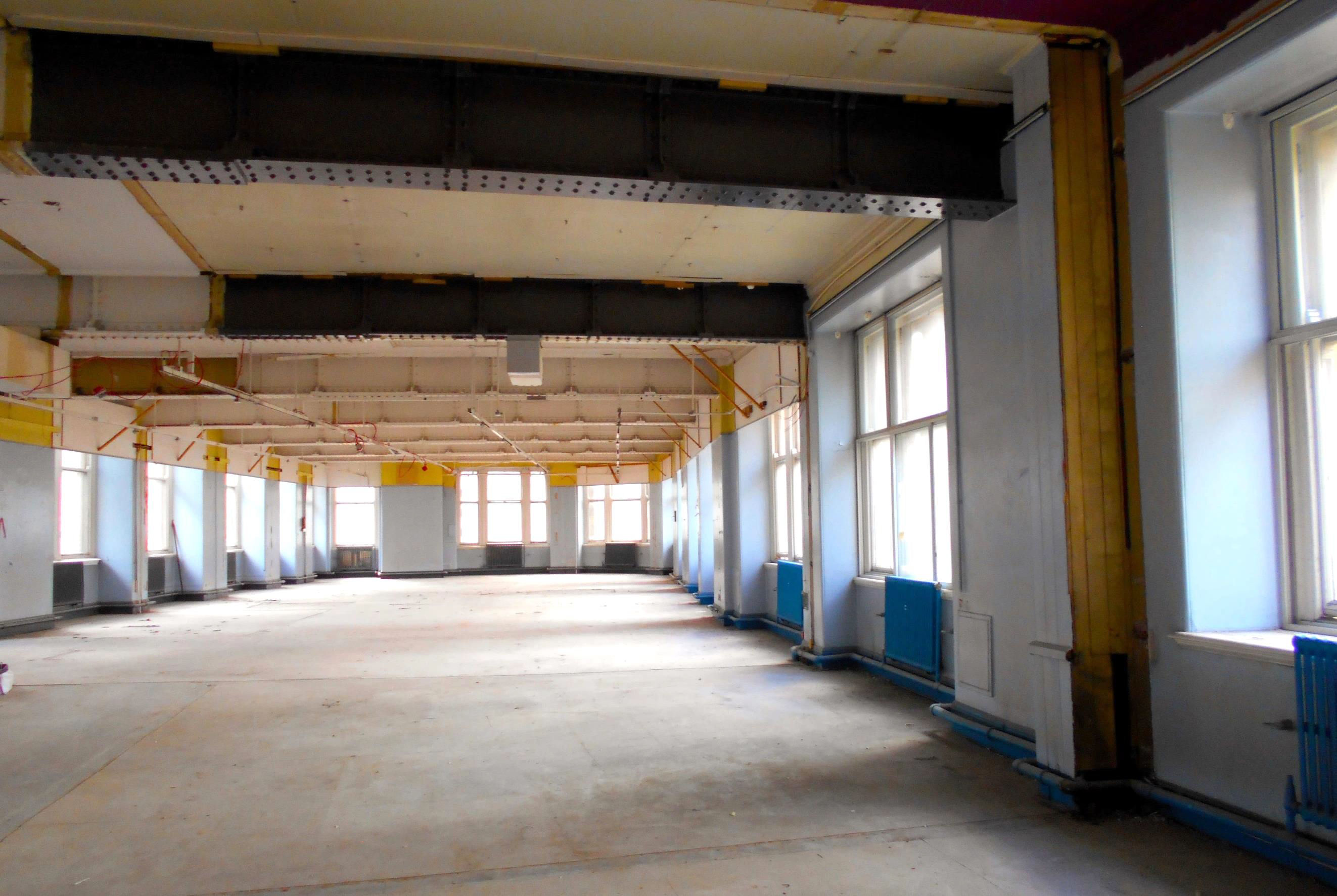 First floor, the large room at the Shudehill tram stop end, note the building curves slightly as does the end wall, (there were several large rooms).