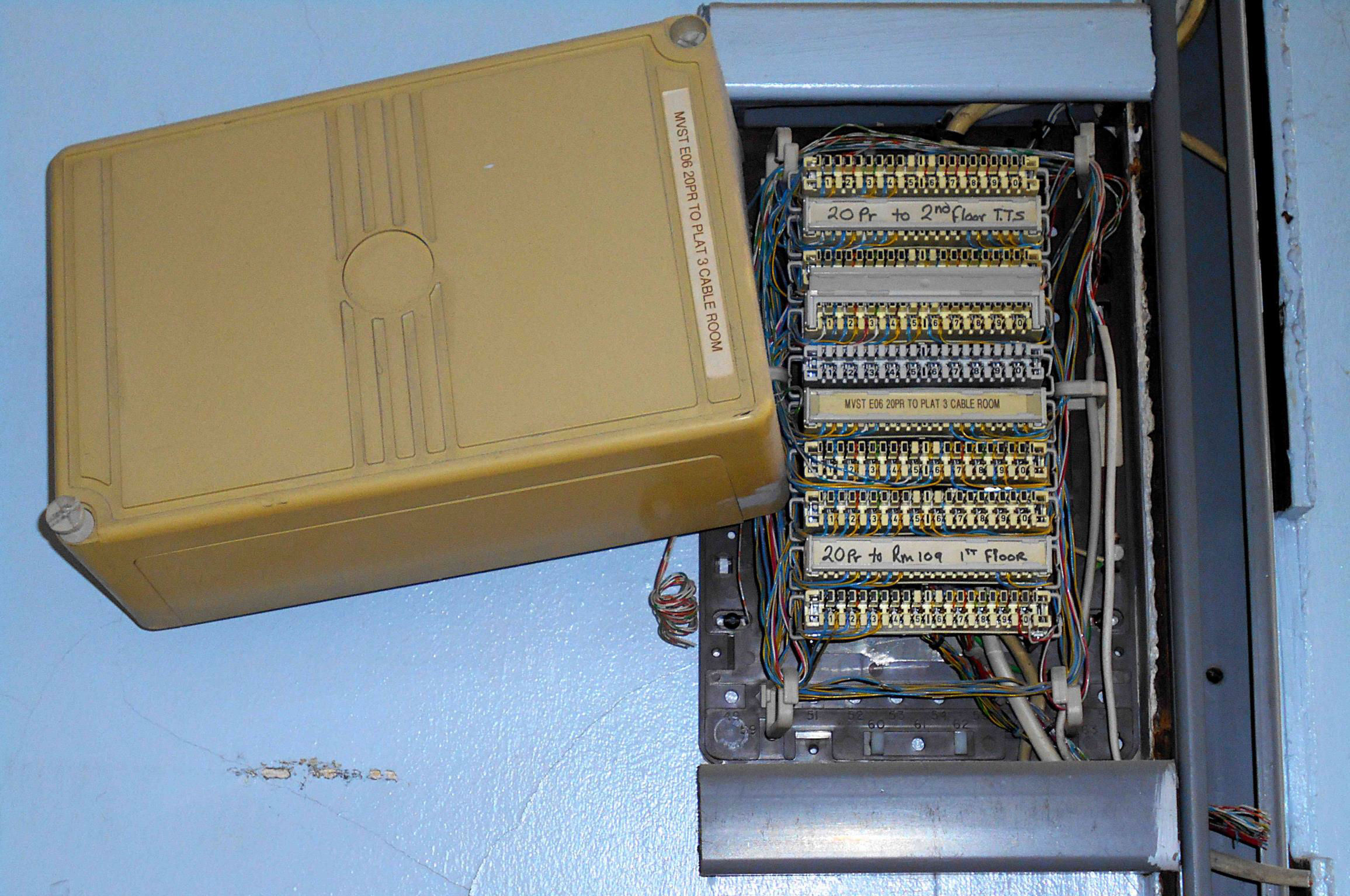 A telecoms box with the wires cut.
