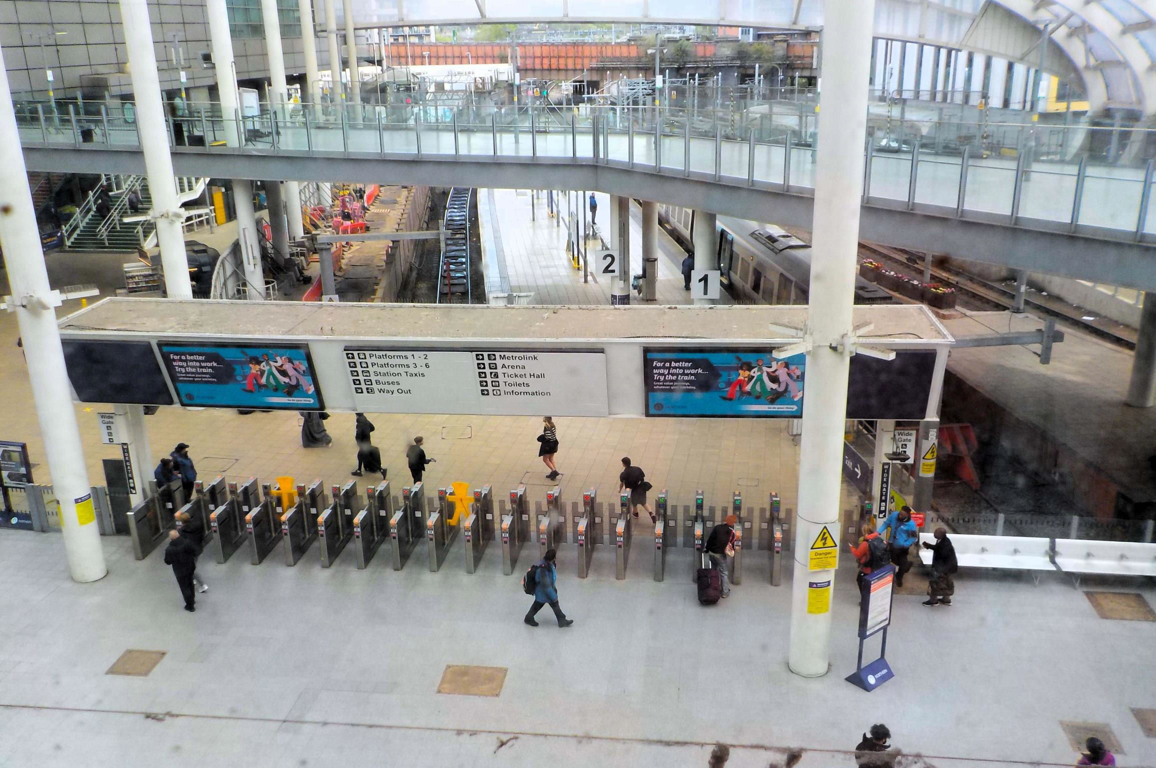 Manchester Victoria gateline and two remaining bay platforms (once there were 11) from the second floor, looking northeast towards Miles Platting.