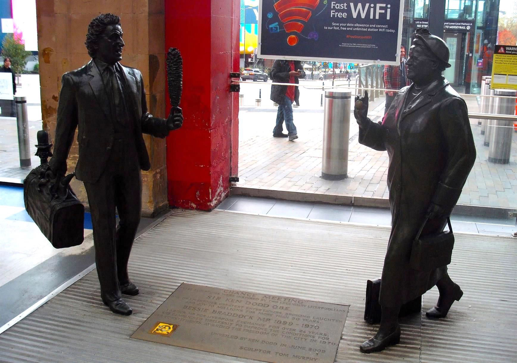 Back on the main concourse, we examined the statues of Ken Dodd and the rather less well-known Bessie Braddock. (Labour MP for Liverpool Exchange for over 24 years, most famous for campaigning for the Lion stamp on eggs.) Over 200bn British Lion eggs have been sold since its launch in 1998; for an eggscellent explanation of the lion and data on eggs see: