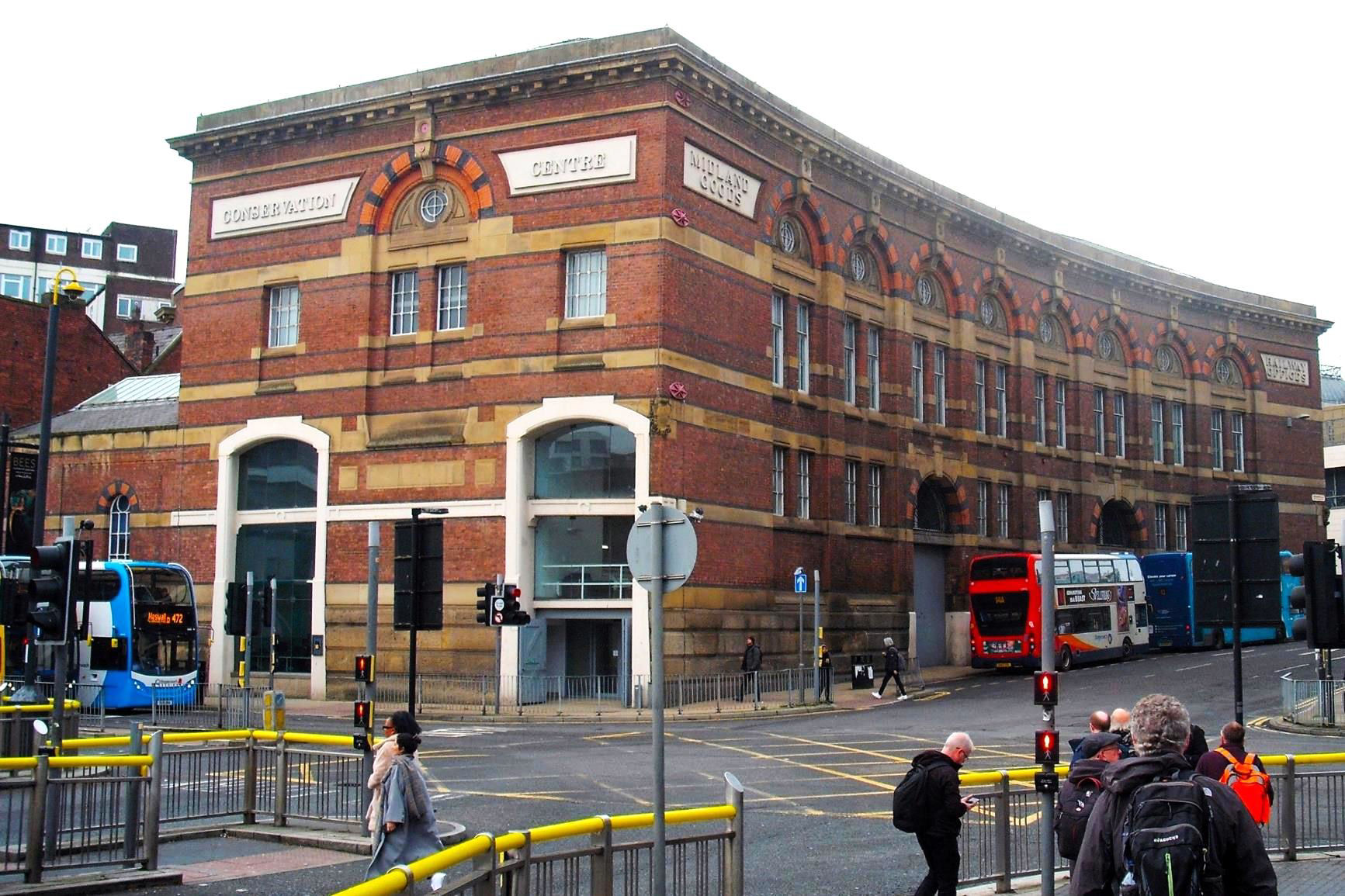 The fixture wasn't over yet, though, and we next paid a brief visit to the Radisson Red Hotel, formerly the North Western Hotel, for a look at the impressive entrance hall and staircase (BLN 1440.185 and e-BLN 1436.2637 photos). Finally, a short walk down Queens Square brought us to the Grade II Listed Midland Railway Goods Warehouse. Built in 1874, this impressive building was never rail connected, acting as a delivery and collection point. Reportedly, it closed in 1954 and is now the Conservation Centre where restoration work is done for Liverpool Museums. Public access is not possible, I'm afraid.
