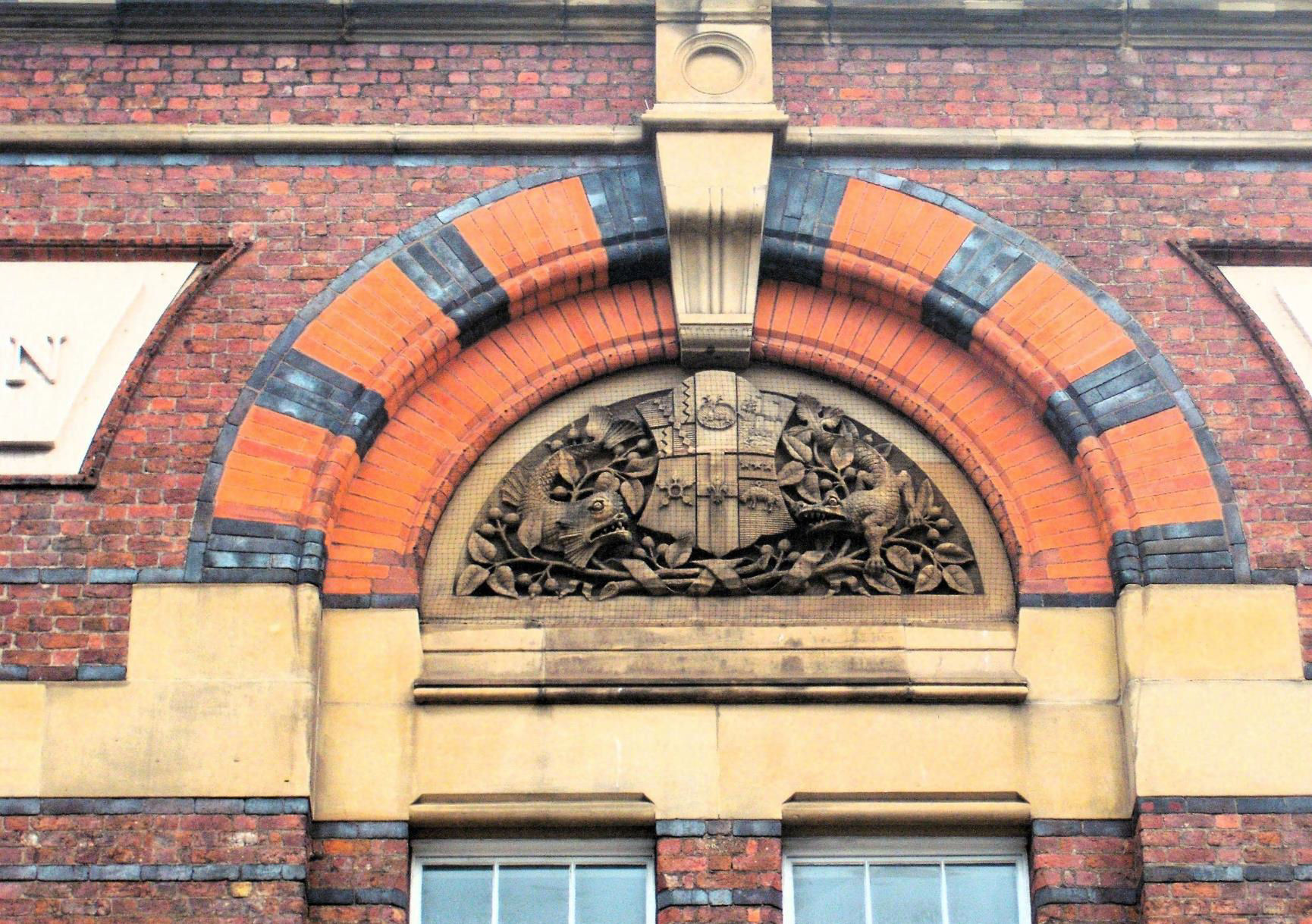 A stone carving on the former Midland Railway Warehouse.