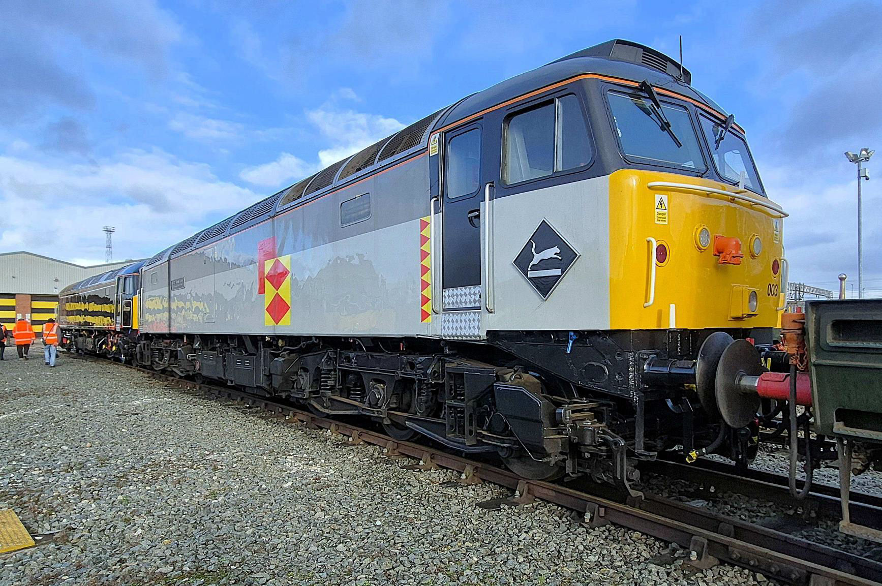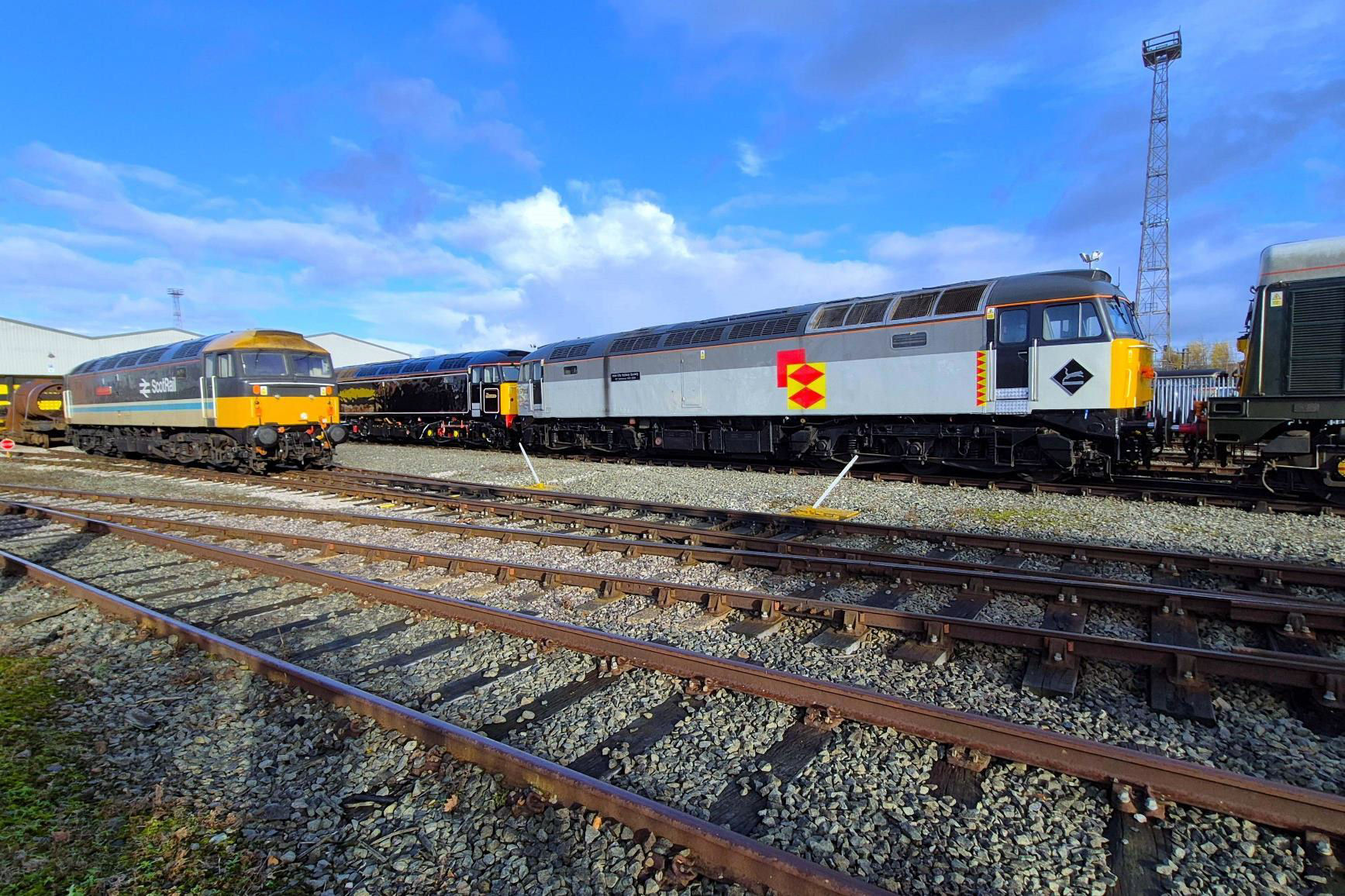 Diesel: ●08631, ●08780 (D3948) 'Zippy', ●20096 (D8096), ●20107 (D8107) 'Jocelyn Feilding 1940-2020', ●37401 'Mary Queen of Scots', ●37521 (D6817) ●37667 (D6851) 'Flopsie', ●37688 'Great Rocks', ●40013 (D213) 'Andania', ●45118 'The Royal Artilleryman', ●47501 'Craftsman', ●47593 'Galloway Princess', ●47712 'The Lord Provost', ●47805 (D1935) 'Roger Hosking MA 1925-2013', ●47810 (D1924) 'Crewe Diesel Depot', ●47816, ●47830 'Beeching's Legacy', ●47853 (47614), ●55022 (D9000) 'Royal Scots Grey', ●57002, ●57003 'Inter City Railway Society' and ●57311.