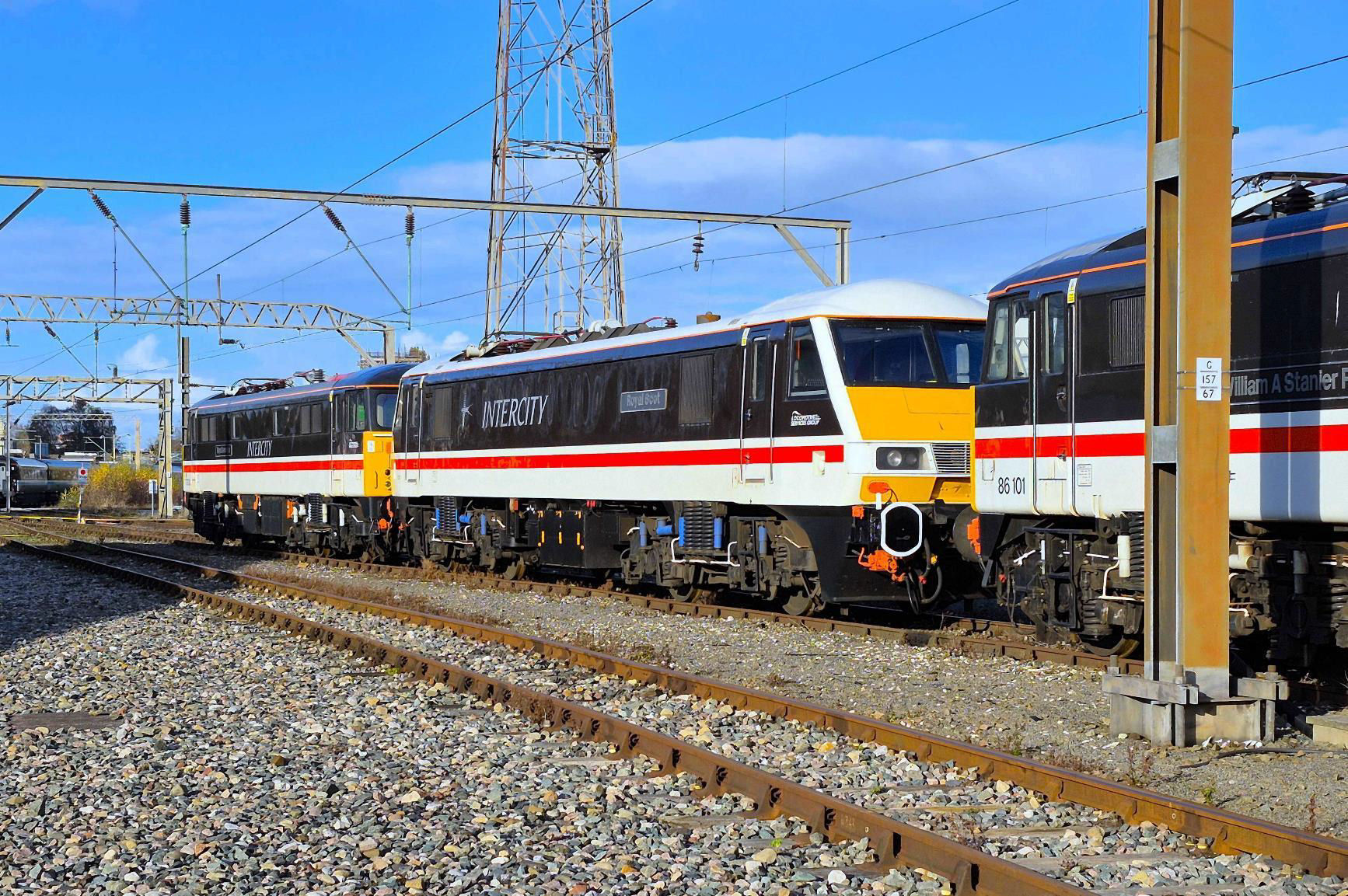 Electric: ●86101 'Sir William A Stanier FRS', ●87002 'Royal Sovereign', ●89001 'Avocet', ●90001 'Royal Scot' and ●90002 'Wolf of Badenoch'.