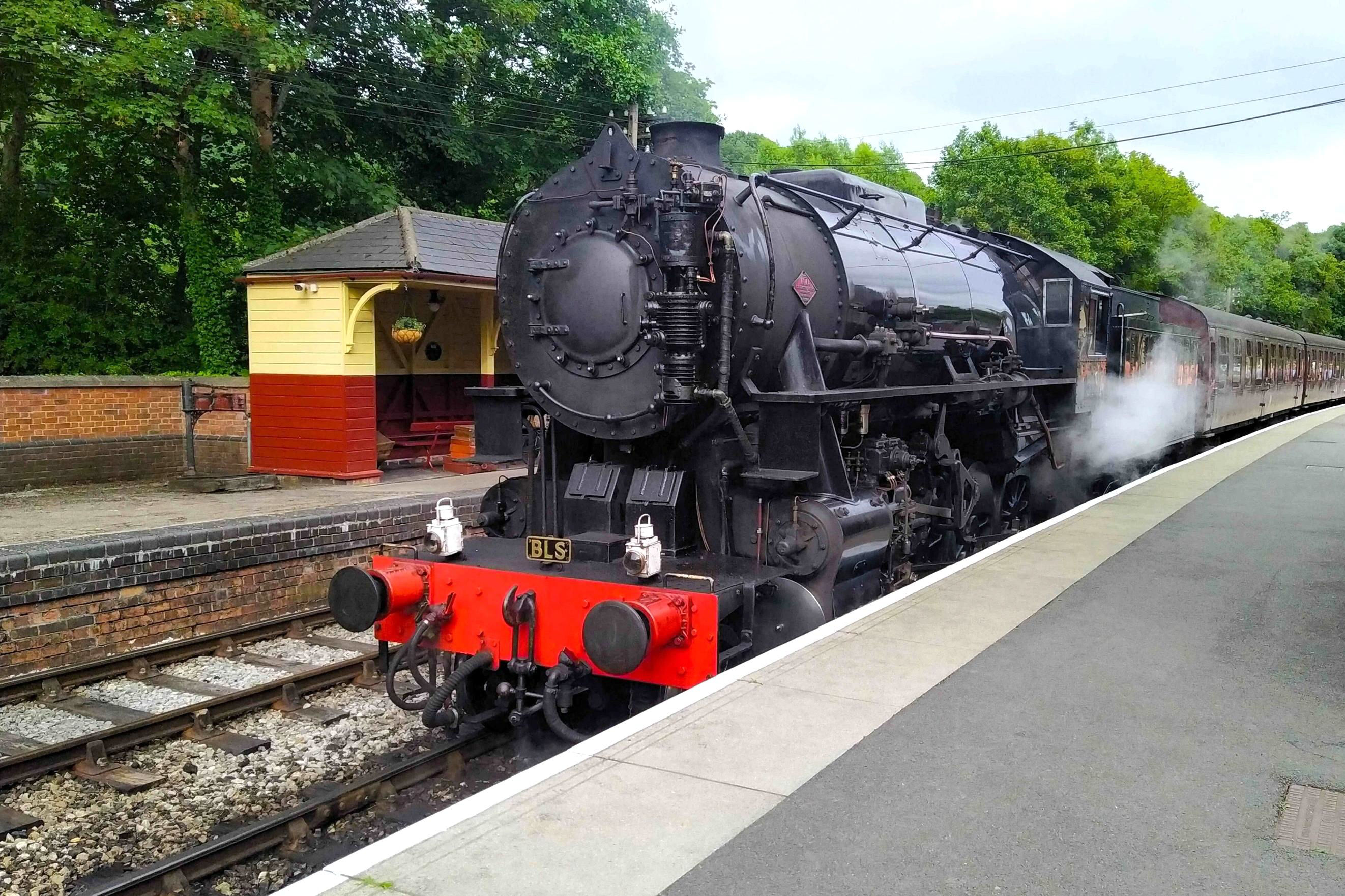 Despite our grand tour, we still arrived at Kingsley & Froghall station with plenty of time to spare, the car park soon filling with 79 participants (including many 'other halves'), to be warmly greeted by the Railway staff. The Churnet Valley Railway runs along lines that were part of the North Staffordshire Railway, which, despite its size, managed to remain independent until grouping in 1923 when absorbed by the LMS. The line through the pleasingly restored station once ran south to Uttoxeter but closed to passenger traffic from 4 Jan 1965, sadly not surprisingly in such a rural location. Freight traffic, especially sand from Oakamoor, lasted until 1988 (the line was taken out of use in 1992) and aggregate from Caldon Low ended in 1989, which allowed the heritage railway to develop (first public services in 1996).