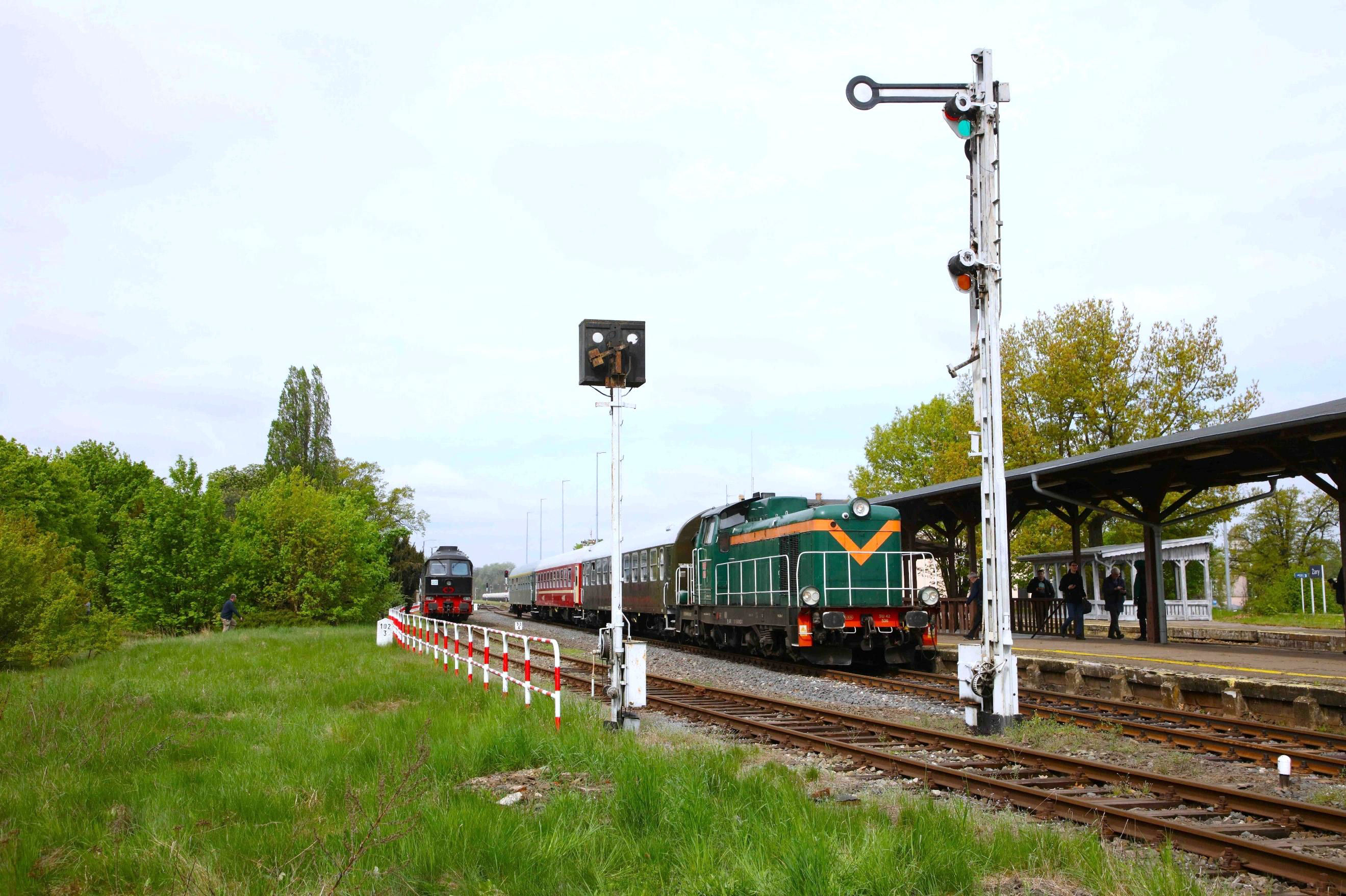 Niegosławice, SU42 536 stands with the BLS Wielkopolski Explorer Railtour on the otherwise disused route from Głogów to Żary.