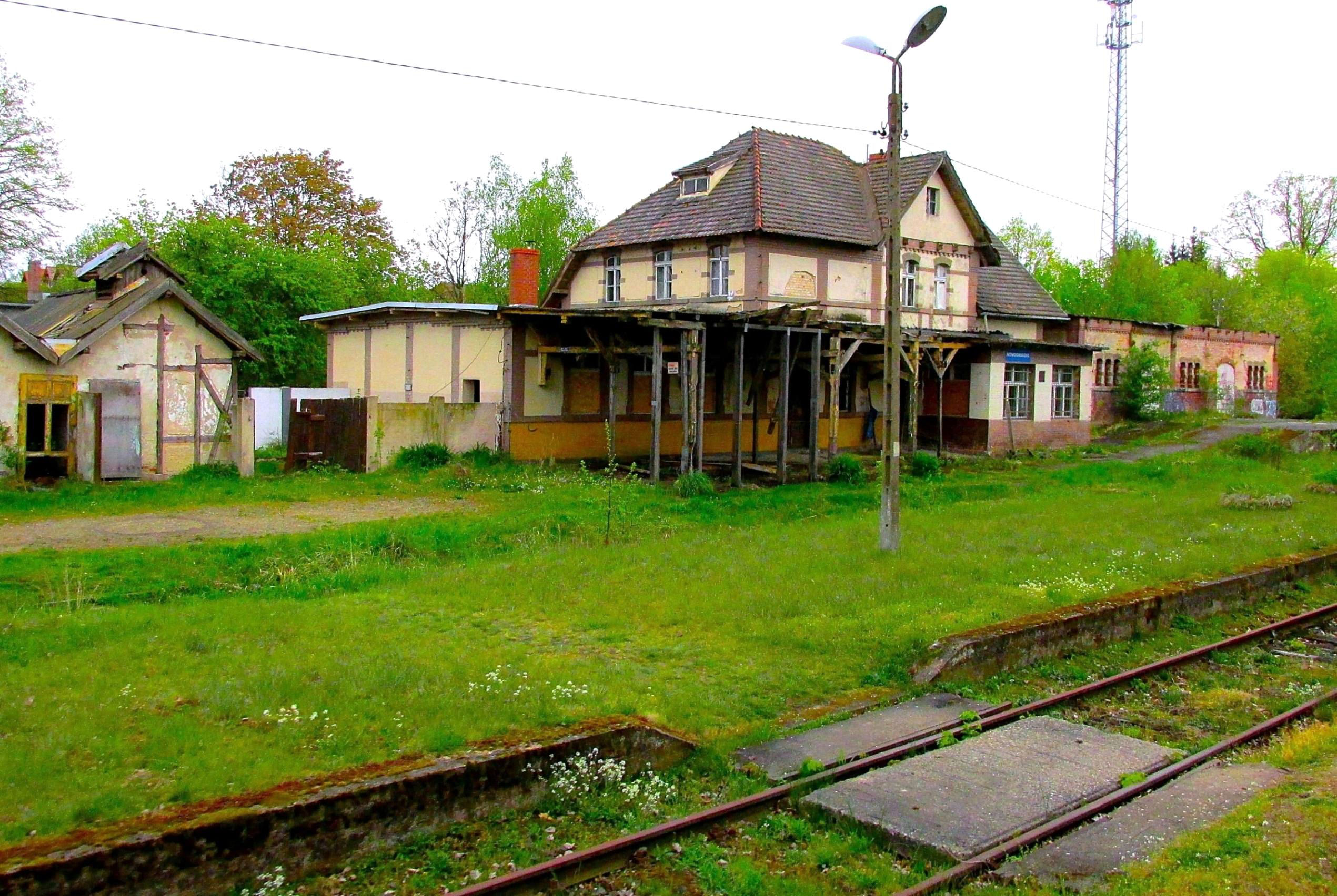 On the freight only branch to Niwnice, the station at Nowogrodziec is literally falling down and propped up.
