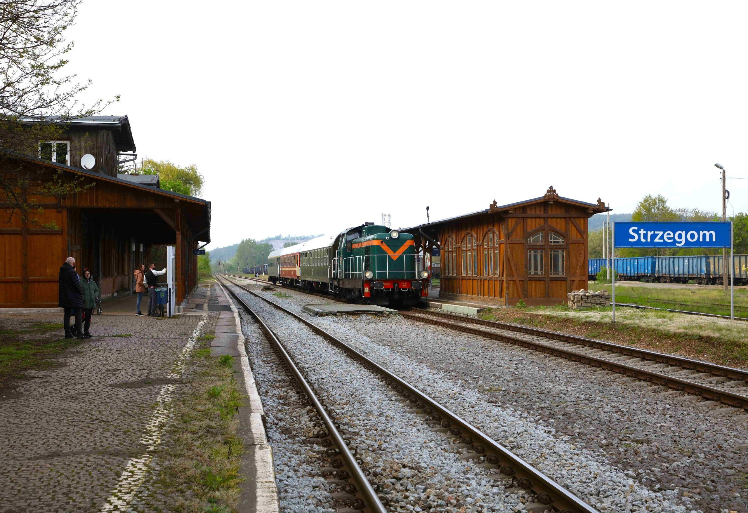 At Strzegom, there was the standard photographic deployment around the train and then, as we appeared to linger a little longer to photo the Ludmila SM42 in the adjacent yard, it then became clear we were lingering a little too long. More time passed without our train manager Patrik, who, exiting the signal box, was shaking his head. It was clear that all was far from well. Indeed, shortly afterwards it was announced there was a (presumably unscheduled) freight train occupying the branch that wasn't going anywhere anytime soon … so that part of our tour was CAPE (the correct UK railway term, not 'caped!).