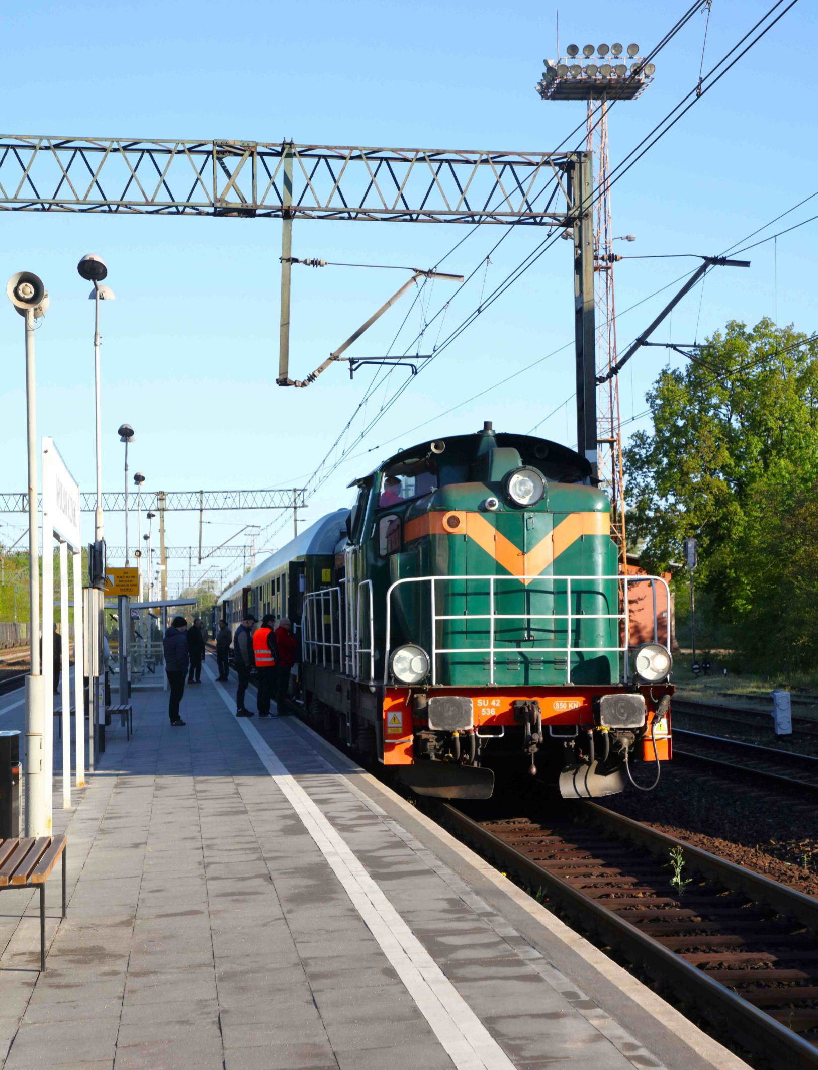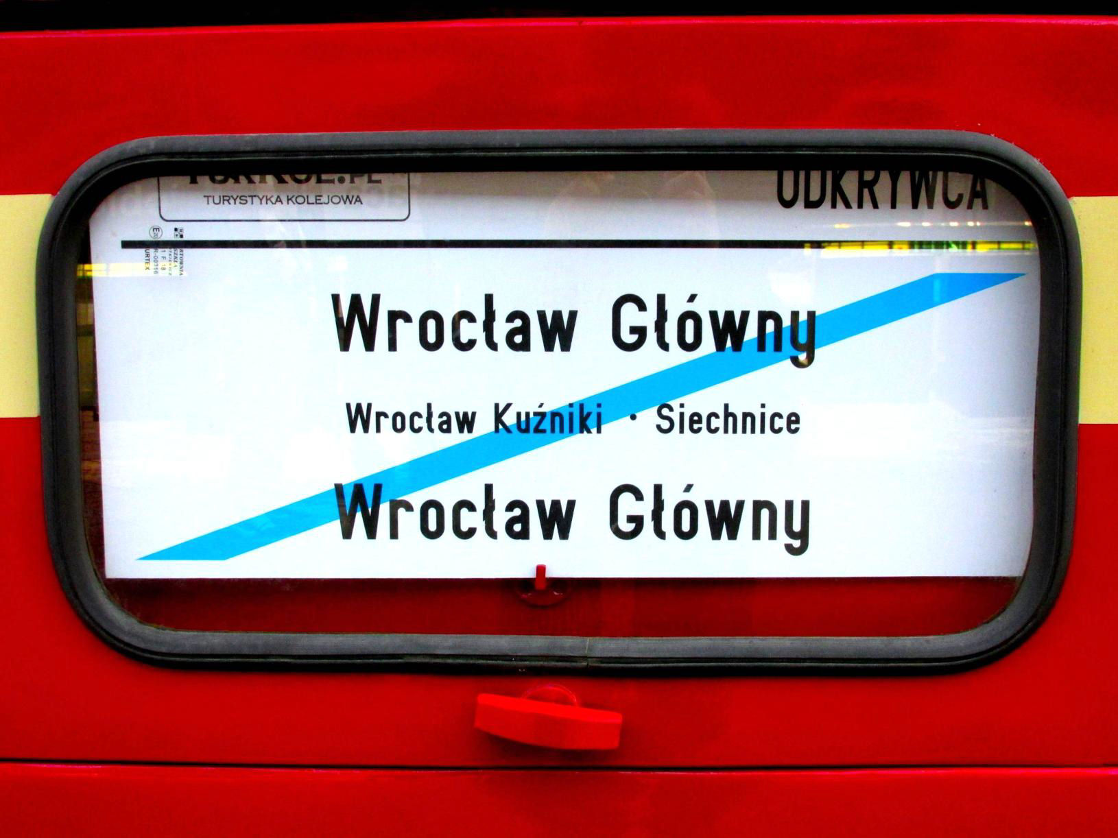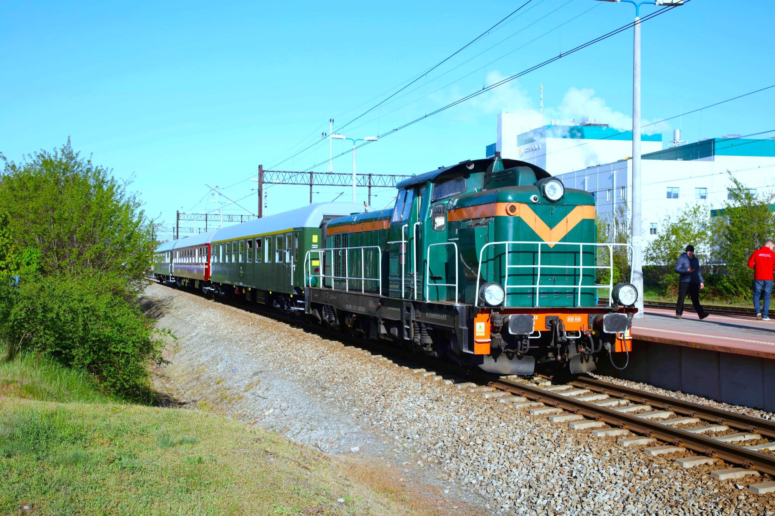 Leaving the hotel at 06.00, I met my report Editor in Chief (Peter Green) in McD's at Wrocław Główny (główny = main) station building. We partook of the obligatory bacon and egg wrap before emerging to check the departures board. Nothing. OK, we always leave from Peron (Platform) 6 outside the main shed, so off we go, finding several others thinking the same way. Except there are a few splitters on Peron 5 which, we agree, is a good outside bet. Ah there is our train … unmistakable arriving from the east … but its heading for the main shed … ah no, we have seen that previously … it'll propel and come over … won't it? For once a tour left from Peron 3 (Tor 5 = Track 5). So, like a small lost tribe, we all walked through the subway and up to P3 finding our self-allocated seats from Day 1, taking the obligatory photos and settling in for the first acts of the day … before picking up here again at 08.54.