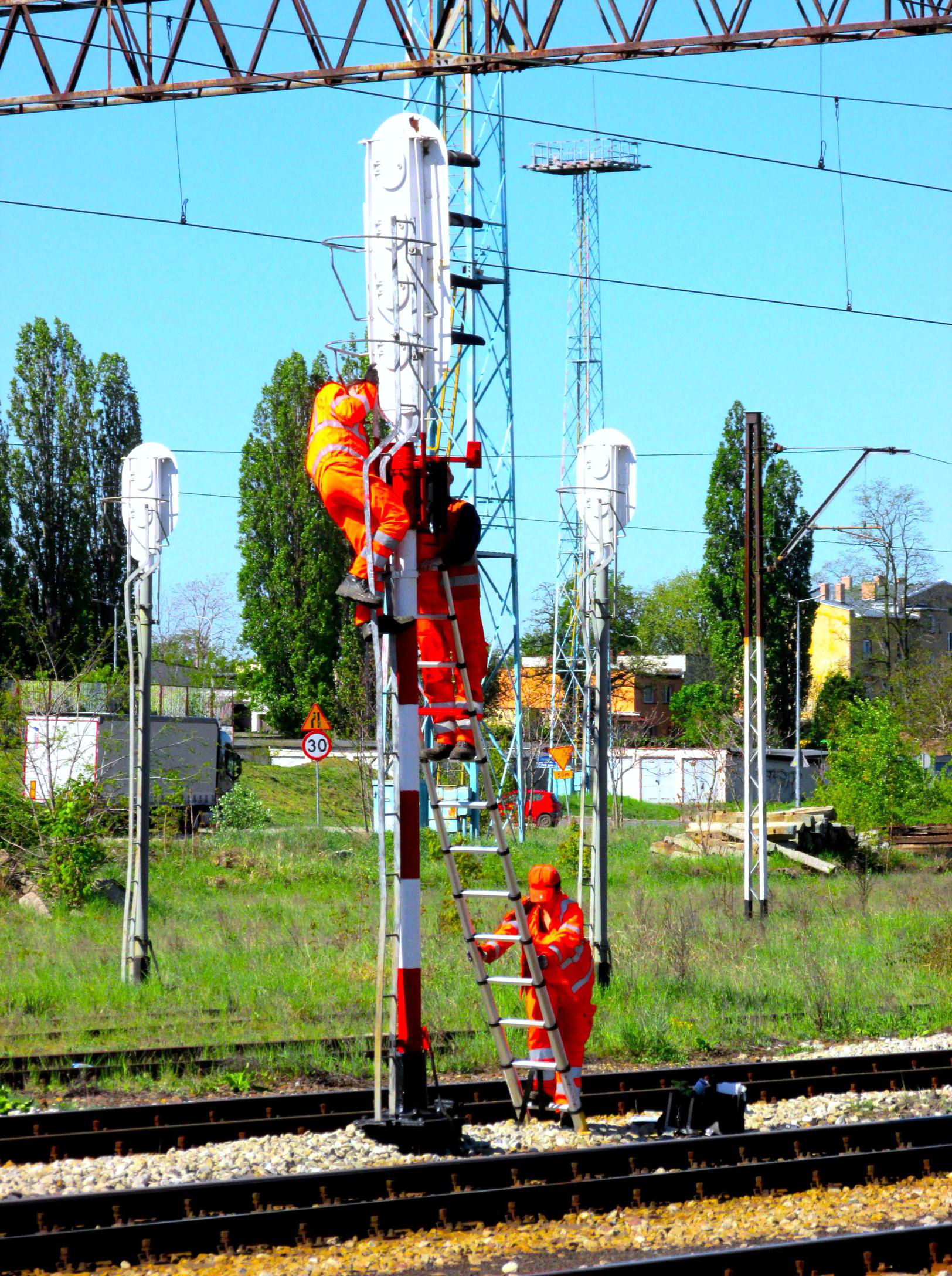 A demonstration of S&T ladder etiquette at Wrocław Główny first thing in the morning.
