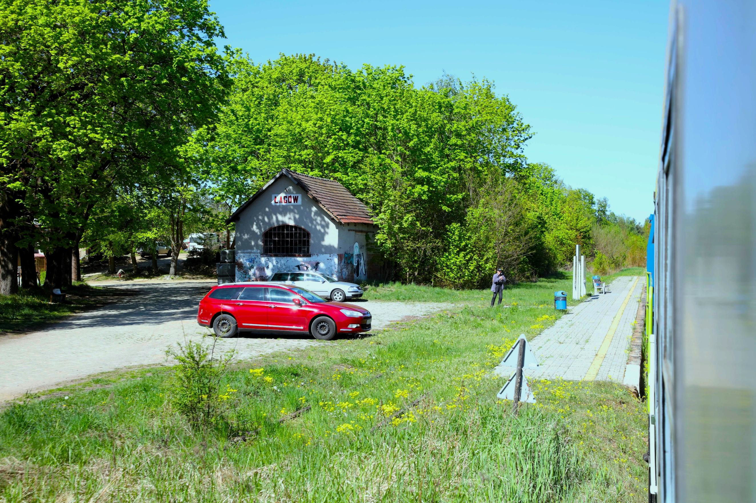Passing Łagów, the platform used by the limited summer weekend passenger services.