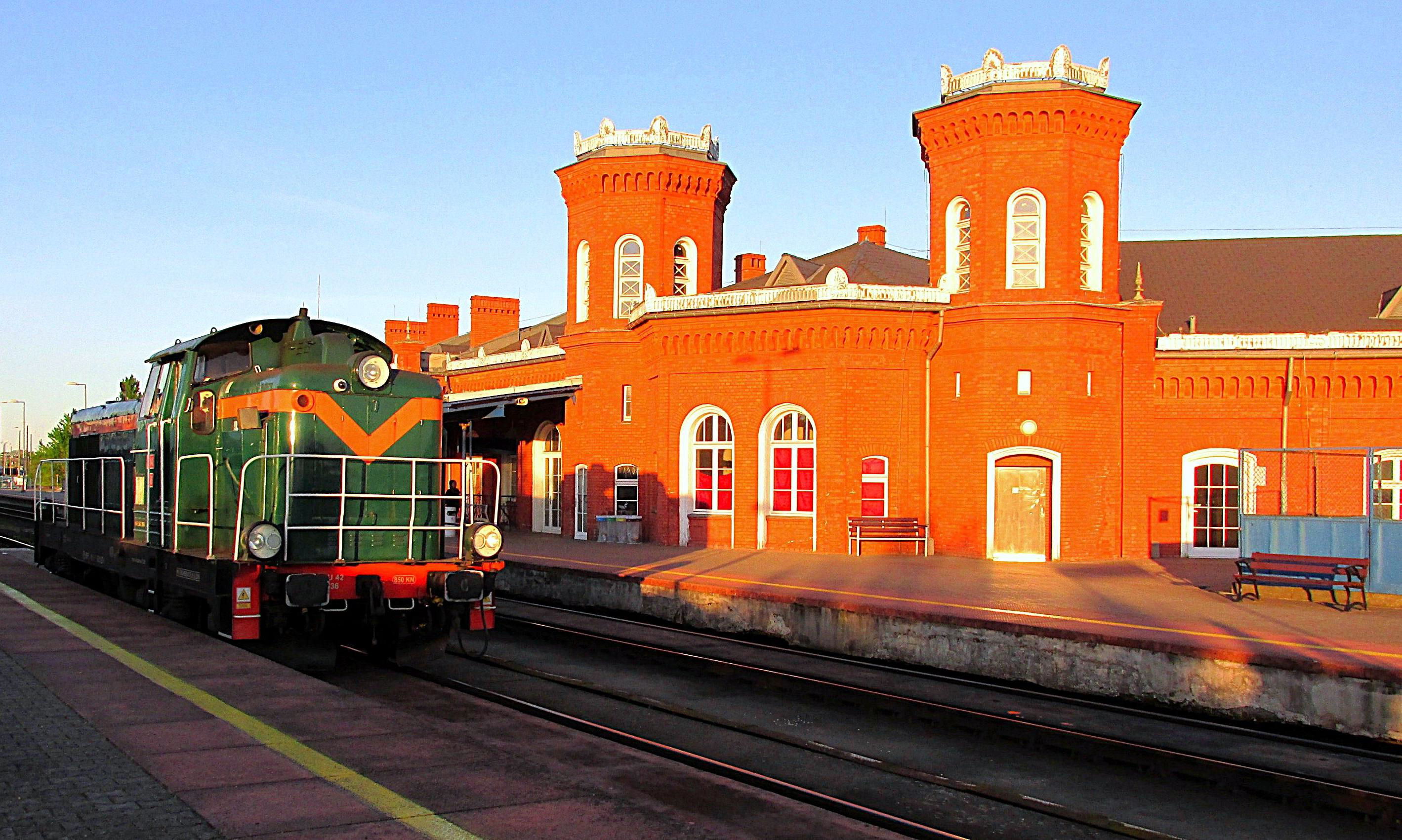 SU42 536 running round past the blazing red brickwork in the low evening sun at Kostrzyn High Level station.