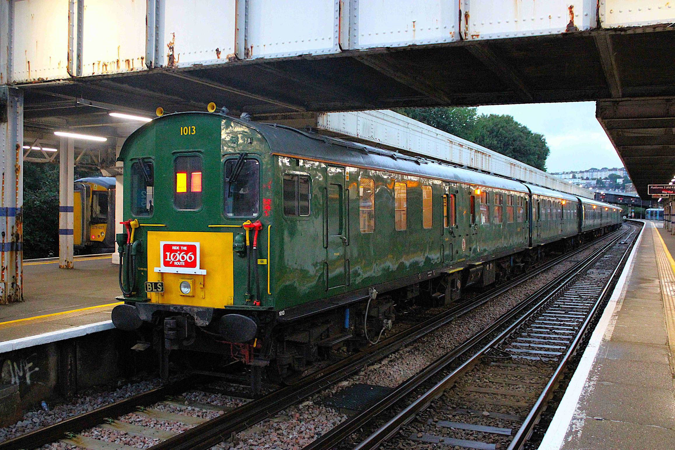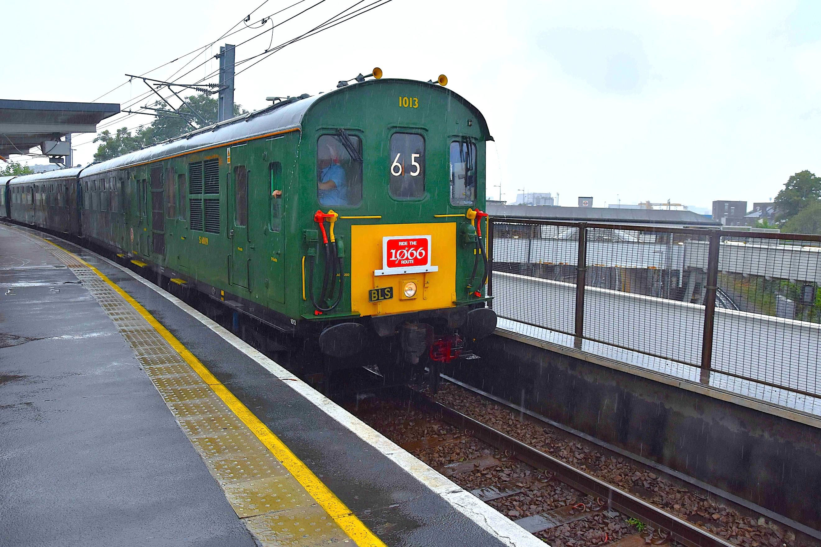 The Hastings unit, looking and sounding splendid, arrived with the stewards eagerly awaiting their first participants of the day. 1Z65, the 06.10 Hastings to Goole Glassworks consisted of cars S60119, S60529, S70262, S69337, S60528 & S60118 'Tunbridge Wells'. The lively departure from Hastings P3 was right on time, the two 500hp English Electric diesel engines sounding fantastic through Hastings and Bo-Peep Tunnels. A fast run was made to Tunbridge Wells, passing Robertsbridge (06.29) and glancing at the Rother Valley Railway infrastructure here, awaiting it joining up with the Kent & East Sussex Railway.