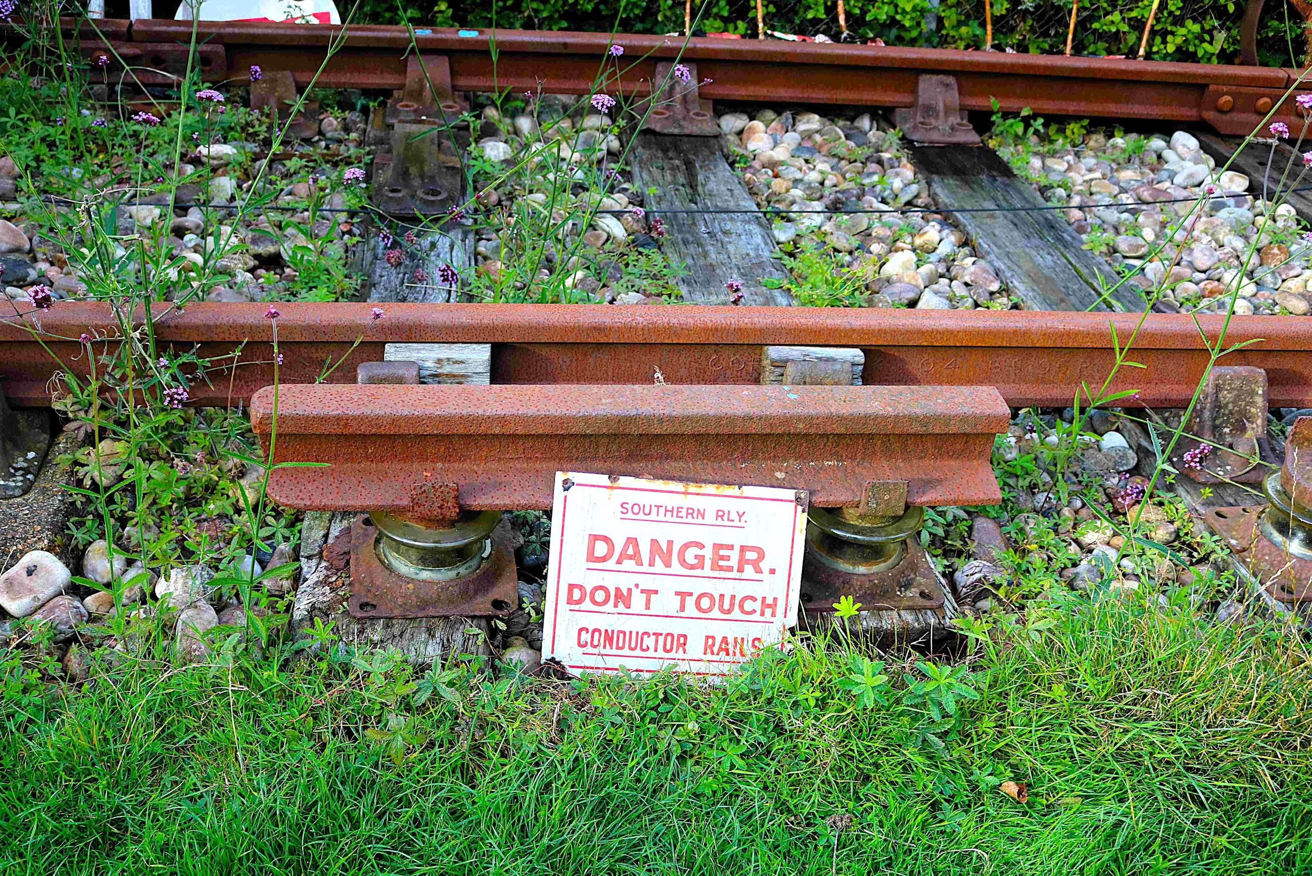 An afternoon trip was made to Polegate, the first time I have used this station. Leaving the station from the Down side, one of the first shops was St Wilfrid's Hospice (Eastbourne) charity shop, which charity would benefit from this fixture. The railway is about a mile from the station in the general direction of Willingdon and I set off for a pleasant stroll. Some 25 mins later, I approached my destination to see our host Adrian waiting by the front of his house. A high visibility jacket hanging on the gate post was a giveaway that I had reached the correct location. He greeted me with 'You look like a railway enthusiast' and showed me through to the back garden (where there was a shed with some railway signage) past numerous conductor rail insulating pots - a change from plant pots - to the railway behind the shed.