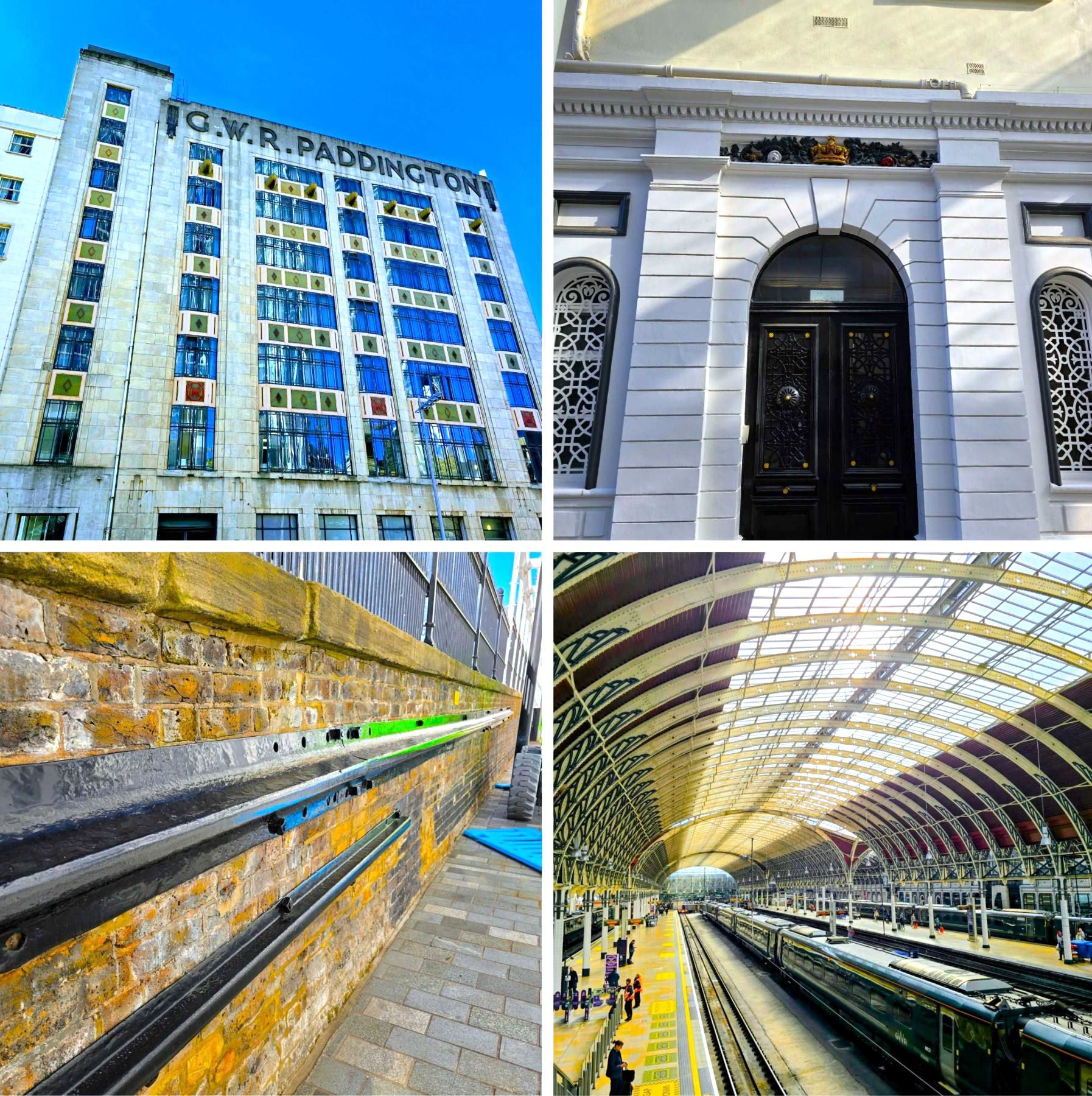British Listed Buildings site outlines why Paddington station is Grade I listed. Personally, I love how the GWR Paddington building is now so much more open and obvious to the passing casual walker. Once more, Adam's historic photos helped us to position where original features, such as the taxi ranks, were located. We noted the royal emblem at the rear of what is now the GWR First Class and Sleeper lounge but was Queen Victoria's personal waiting room. There is also a wonderful display showing historic railway track, described
