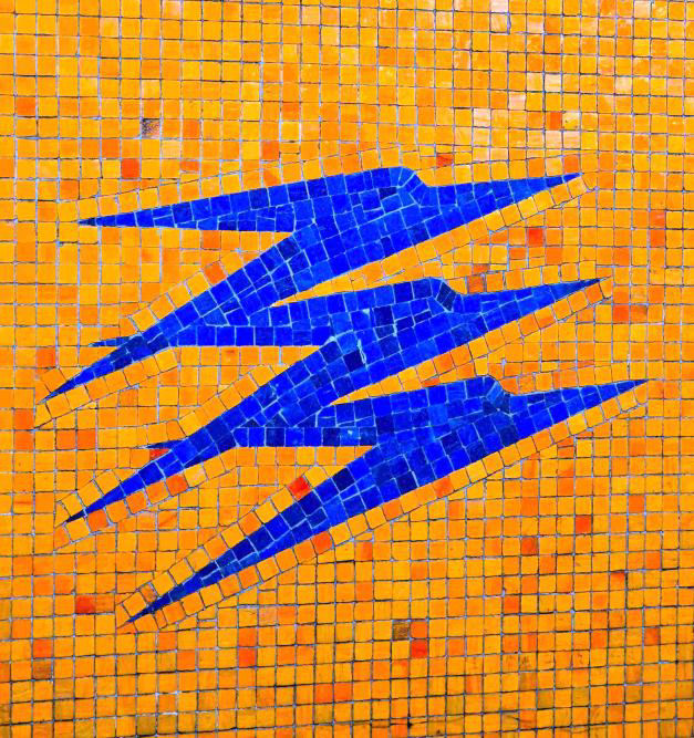Hatton Cross, surviving mosaic tiling of the 1932 Imperial Airways Speedbird logo, adopted by the British Overseas Airways Corporation with the 1939 merger. British Airways callsign is still Speedbird, after being chosen at the time of the BOAC/BEA merger in 1974.