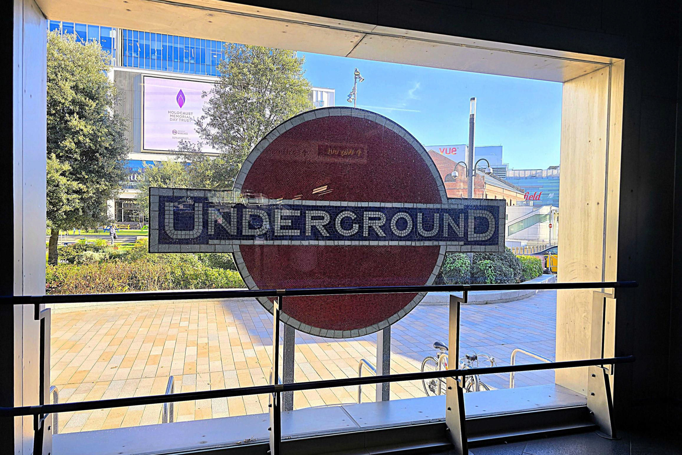 Within the new station is a roundel mosaic, from that original Wood Lane station. It seems to be a moot point as to whether it was reconstructed from the original tiles or stayed 'intact' throughout but either way it is a lovely item. [*Buildout is an American term referring to the development, construction, or expansion of something. It can also mean the process of implementing these plans, such as a commercial tenant taking a leased space, or the state of something being fully developed.]