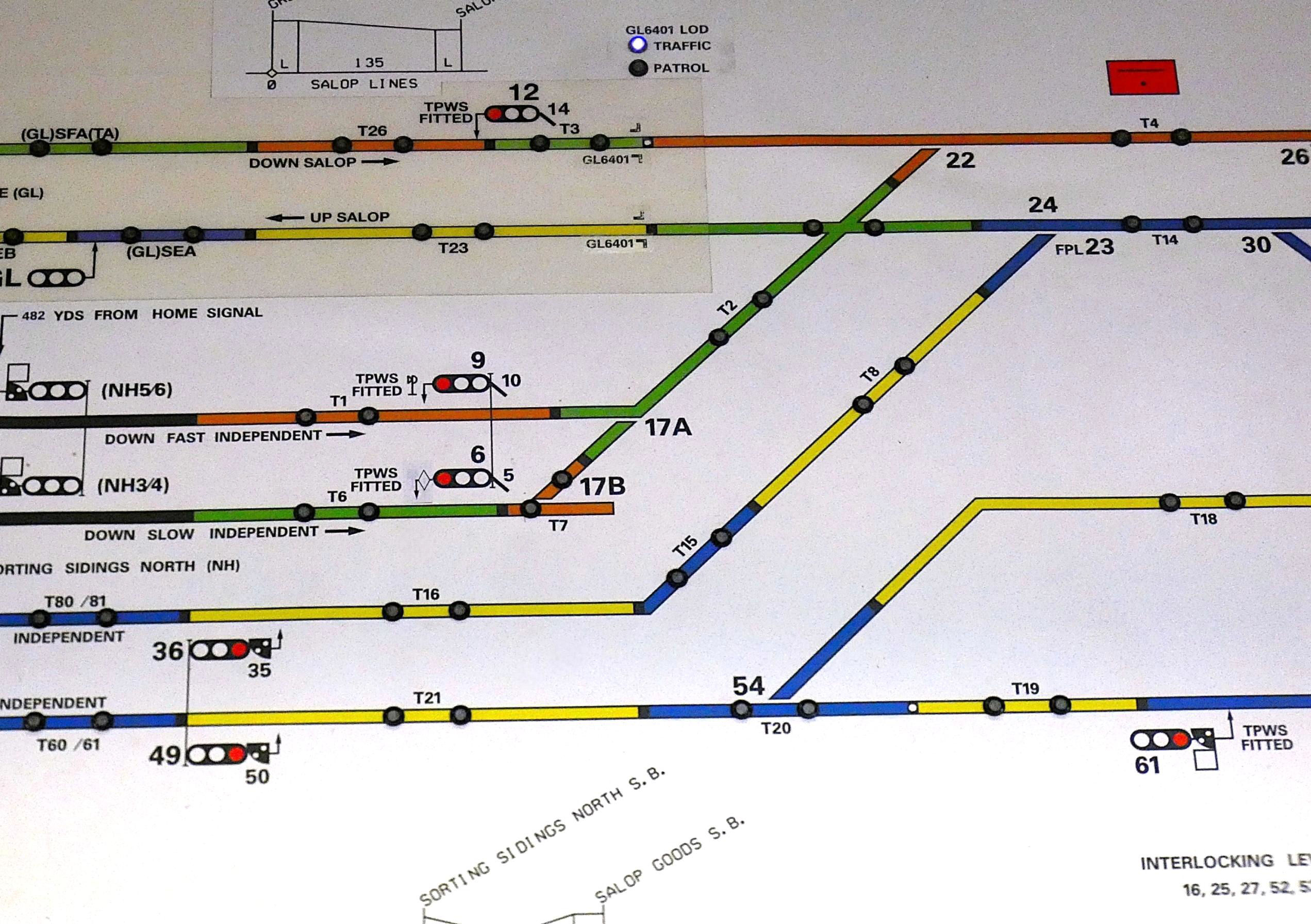 The most interesting section was the last, towards Crewe Sorting Sidings North box for trains to / from Basford Hall. This was, and still is, a four-track railway with Fast lines and Slow lines in each direction, despite the highest permissible speed being 10 mph!! All four lines were worked under Absolute Block regulations but with permissive working (passenger lines) authorised in the Signal Box Special Instructions (SBSIs). Although not explicitly stated in either the Rule Book or the SBSIs, it might be expected that permissive working would only apply to non-passenger services. Logic would suggest that the permissive sections would have to be operated under Absolute Block rules to allow passenger trains to pass. [That happens with railtours - Ed.] There were special instructions around clearing protecting signals for passenger trains heading into the otherwise permissively worked section to maintain train separation. The lines are physically paired by direction; the outer are Fast lines and the inners the Slows.