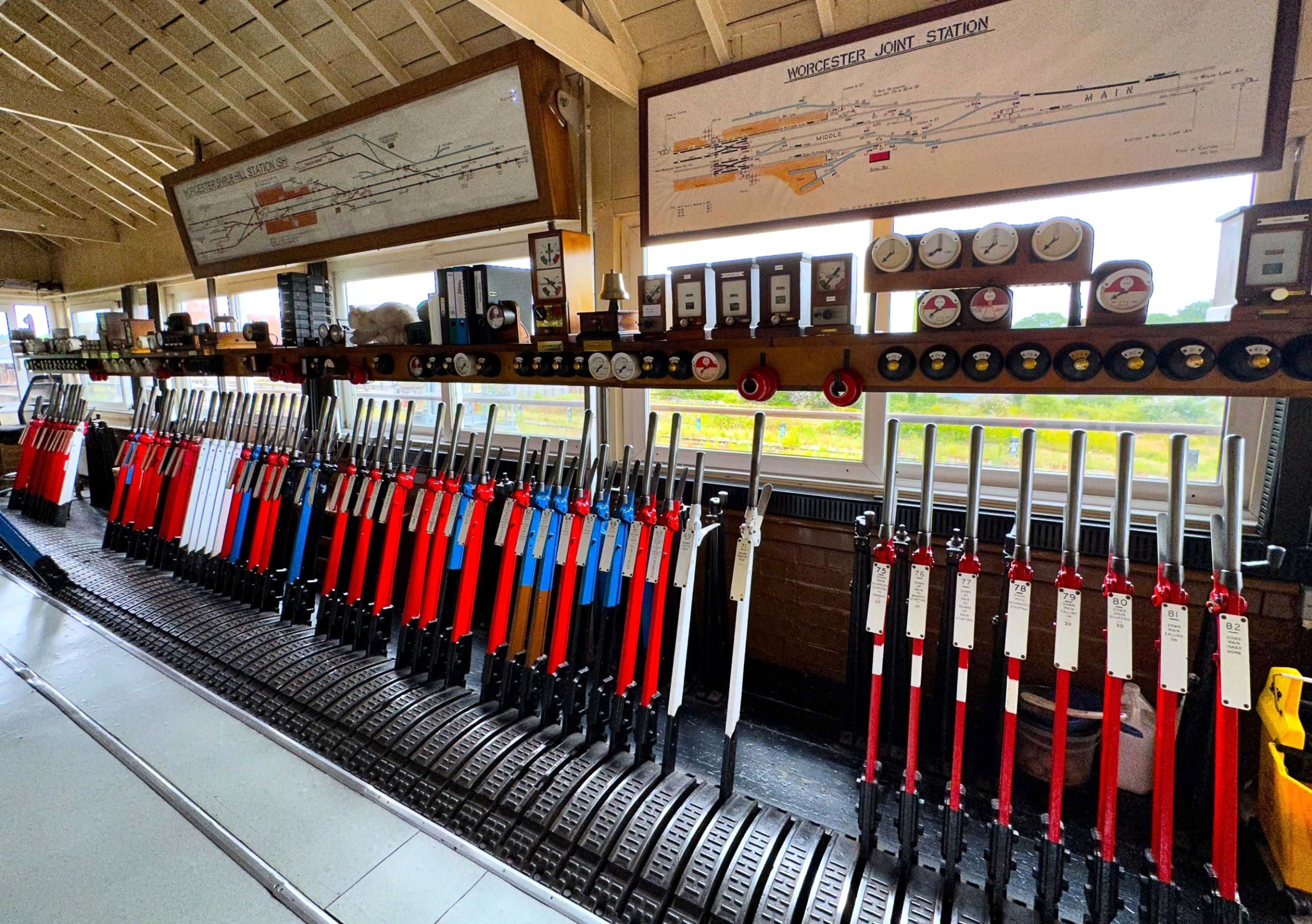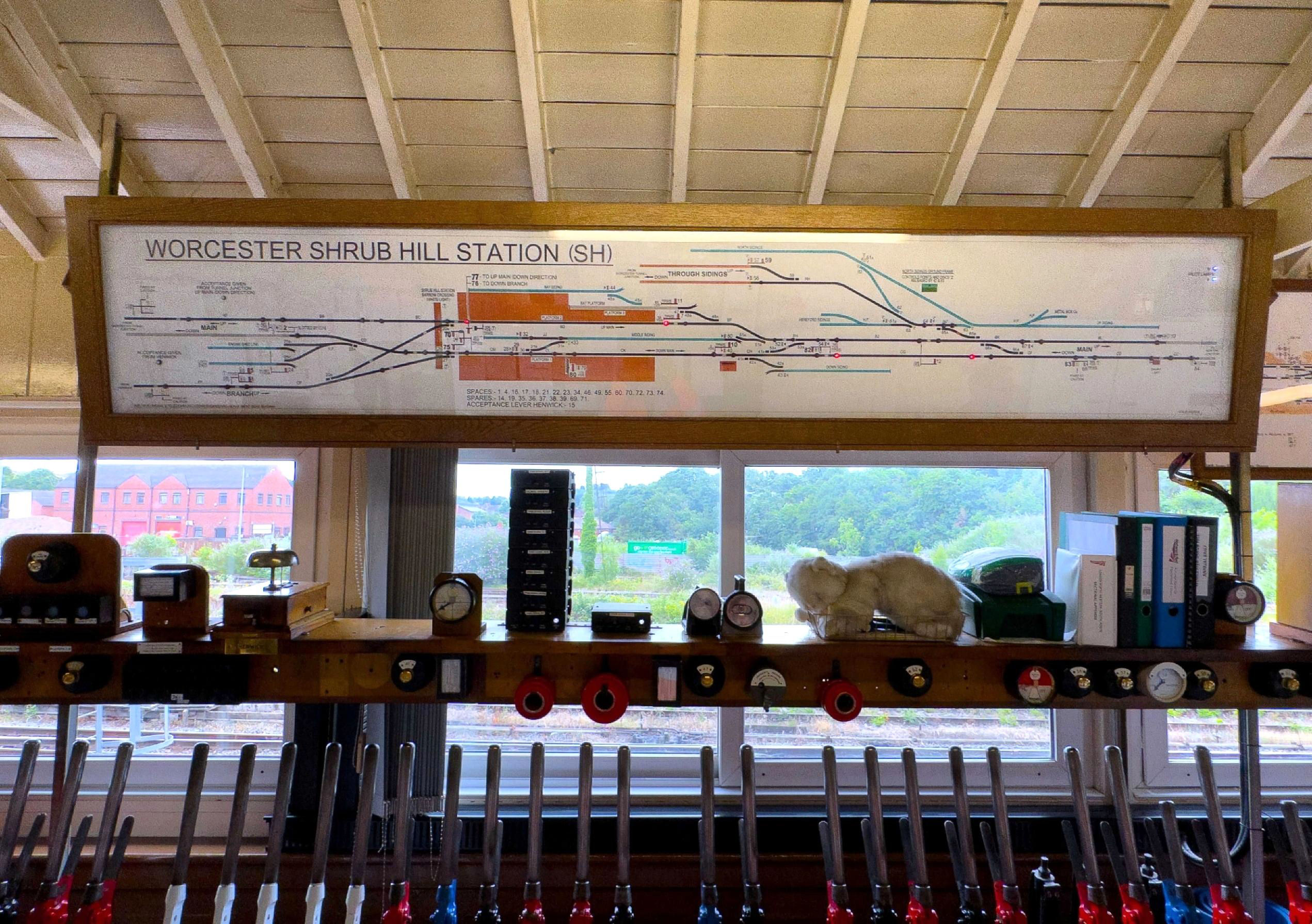Worcester Shrub Hill signal box lever frame, block instruments and diagrams.