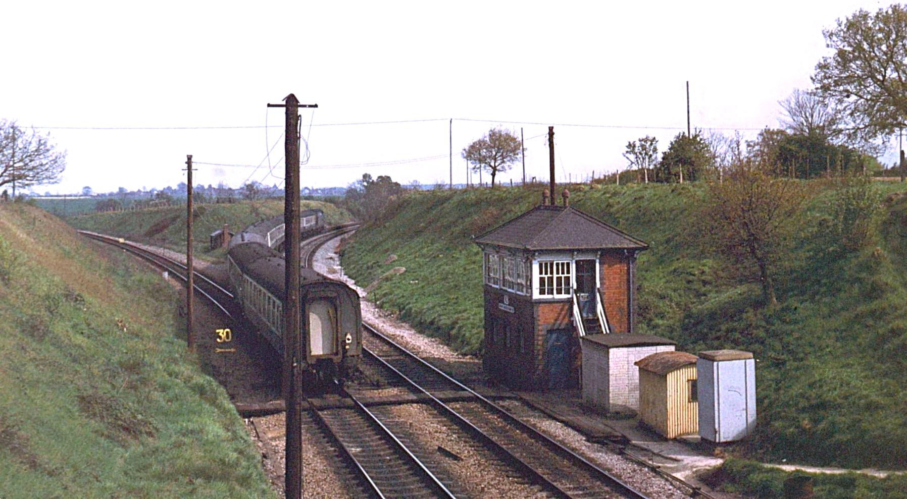 The Up Refuge Siding (now disconnected) is opposite the box and the former goods shed and yard are evident.