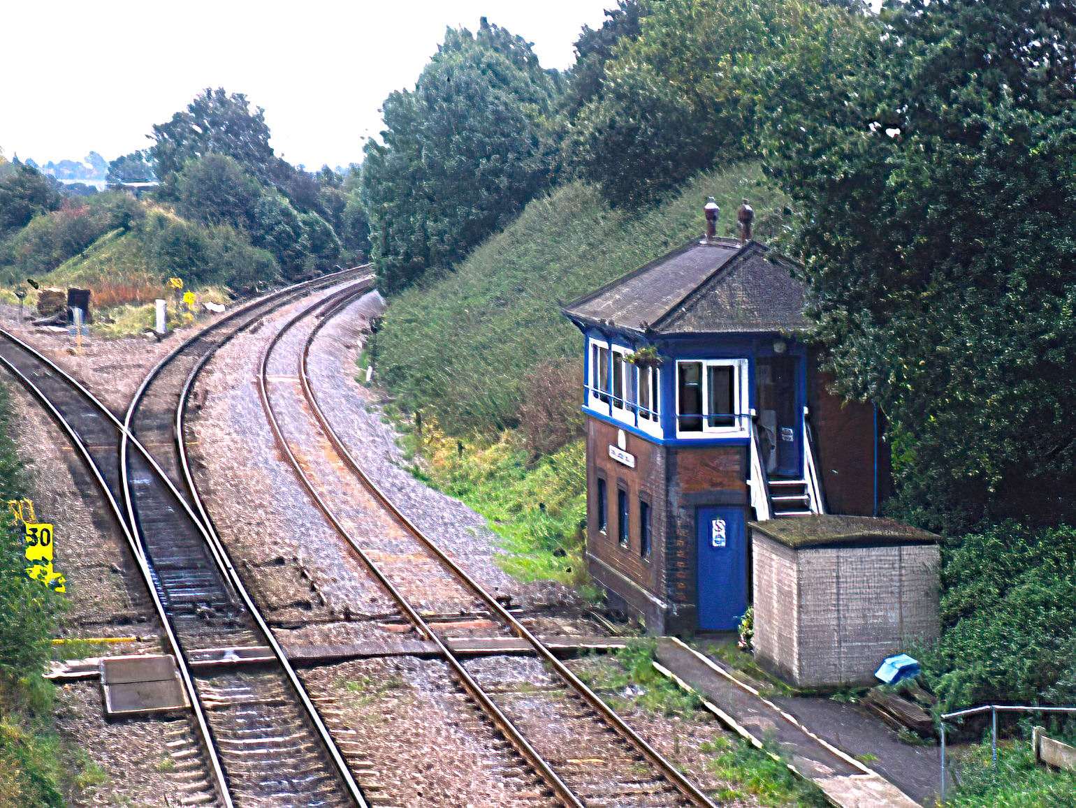 Norton Junction box was next on the agenda, after a 4½ mile drive southeast. This GWR Type 7d signal box is in a cutting just to the northwest of the junction. Here, the single track North Cotswolds line (to Evesham, Oxford, or as we say in Cambridge, 'the other place' and London) diverges from the short double track Abbotswood Curve that joins the Birmingham to Bristol main line further southeast at Abbotswood Jn. The semaphores controlled by this box are again lower quadrant, their height shows that the principal line is towards Cheltenham not London! Norton Junction station, (Norton Halt after 7 Sep 1959) here, CP 3 Jan 1966. Abbotswood Curve, although visible from Worcestershire Parkway, is perhaps a bit too far for a P5 & 6 there, allowing the hourly Worcester to Bristol service to call and create a great interchange! (P4 is reserved North Cotswold Line redoubling.)