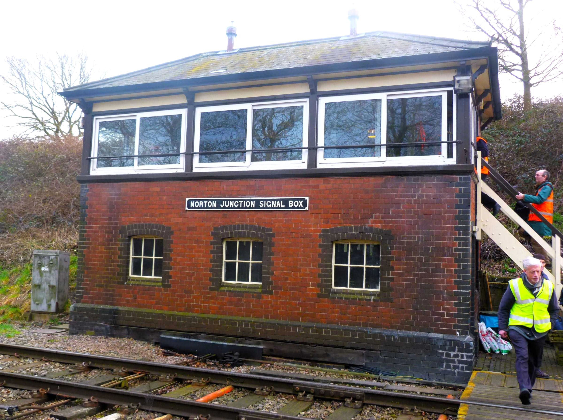 Norton Junction signal box, a 3 Mar 2012 BLS visit; your editor is bottom right. No trains were in section!