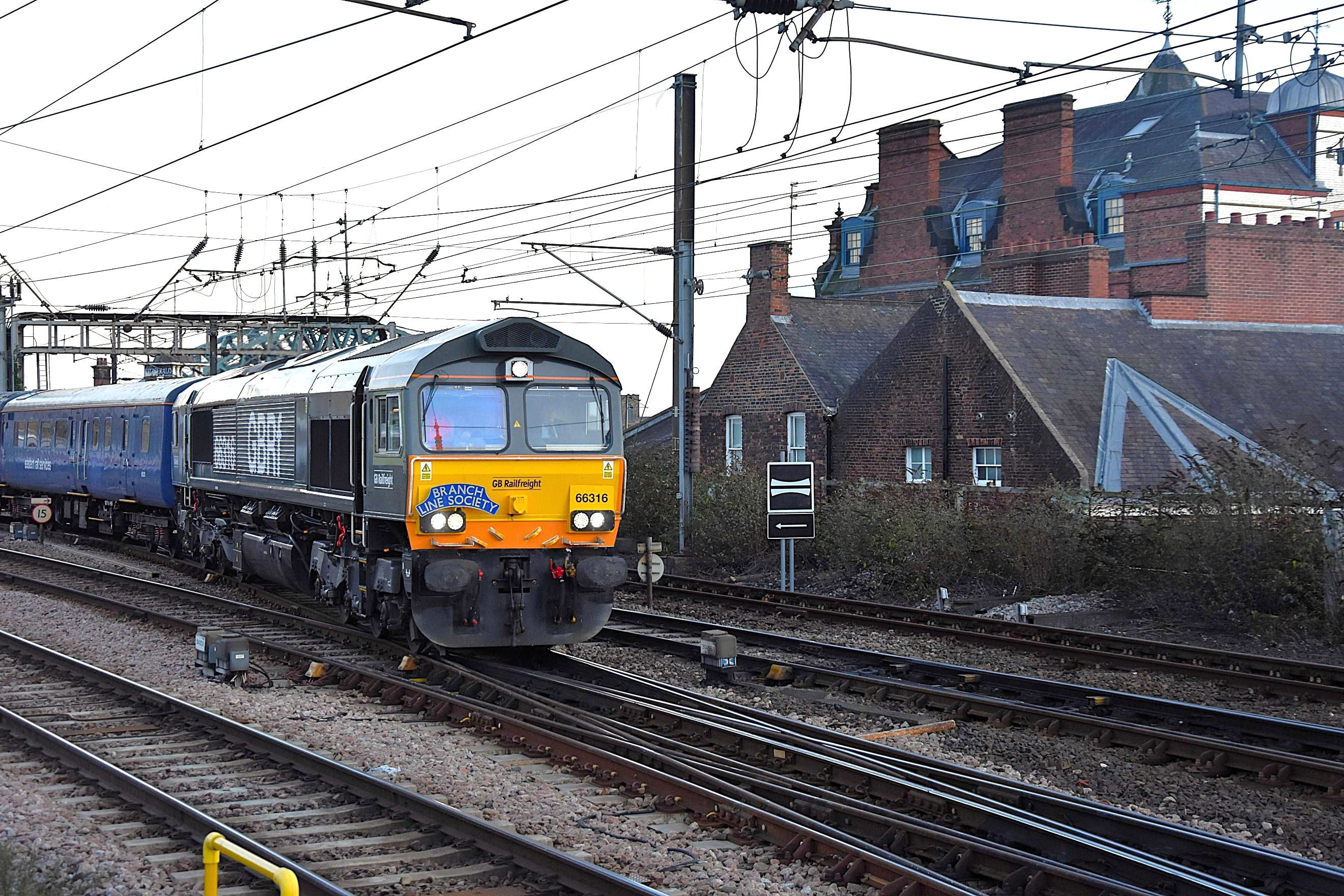 66316 approaches Newcastle P2 with the stock of our return 'Christmas Train' to London King's Cross.