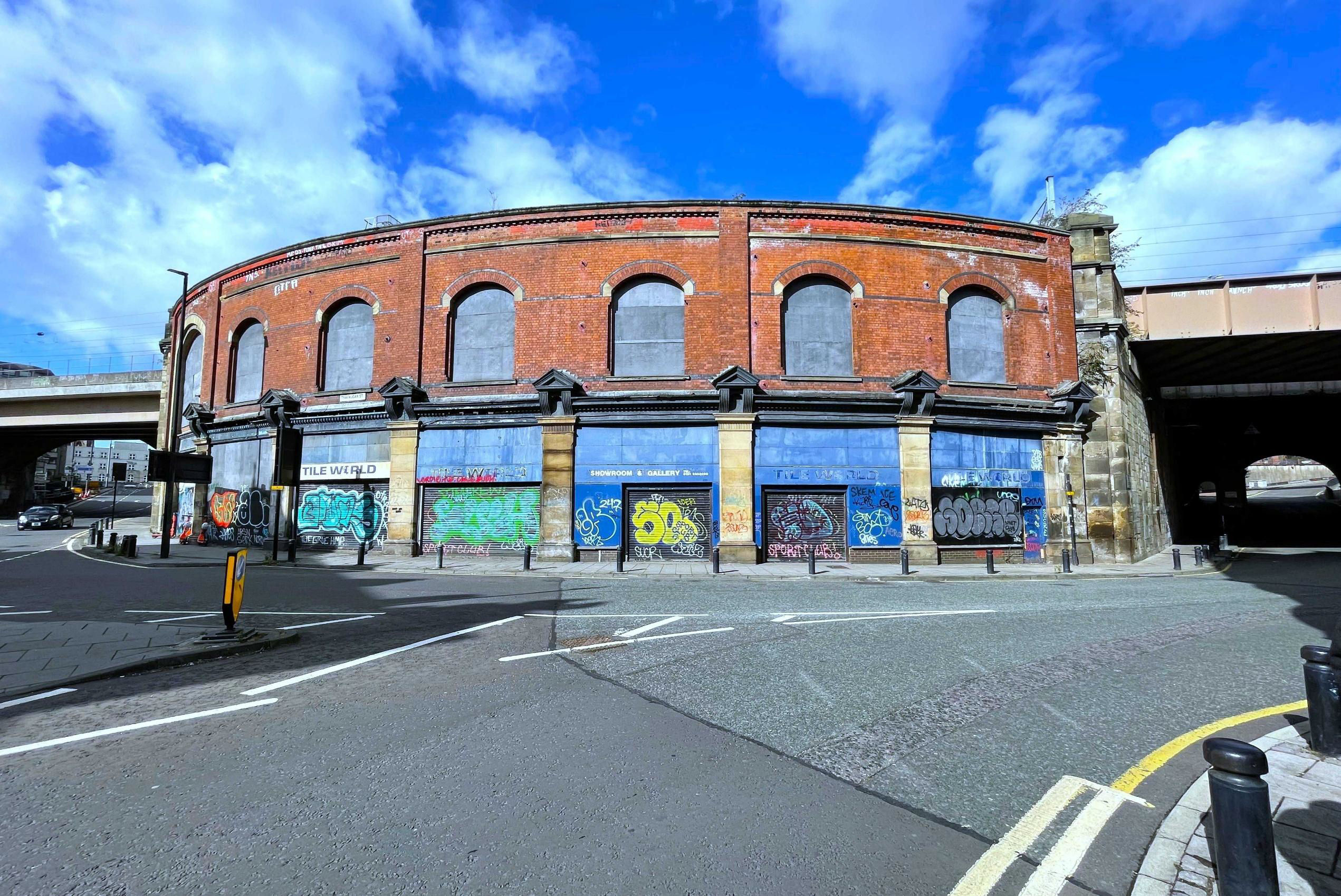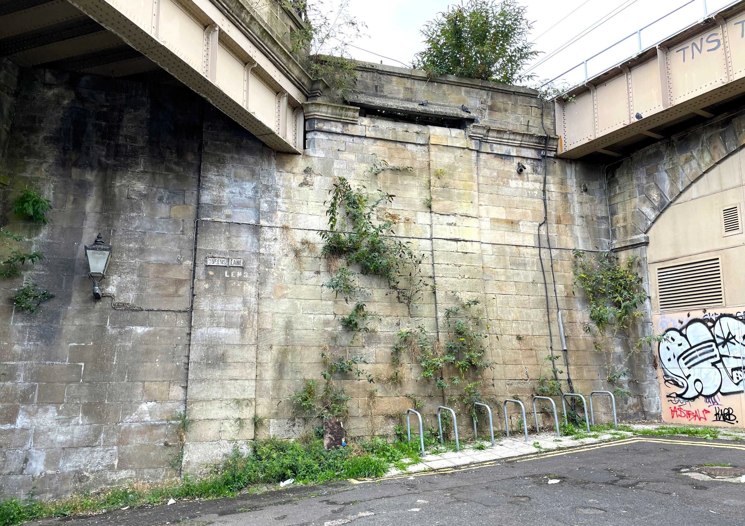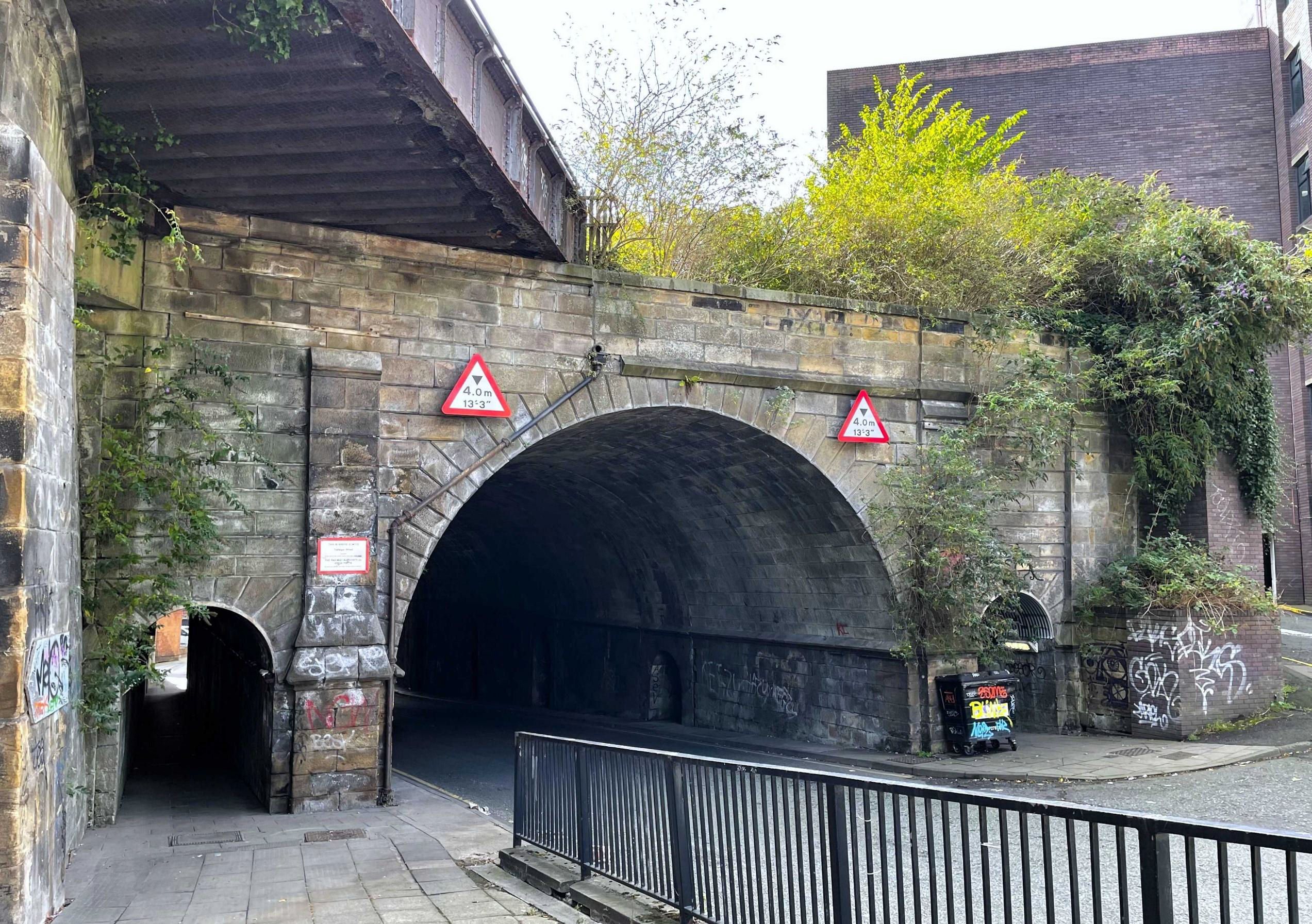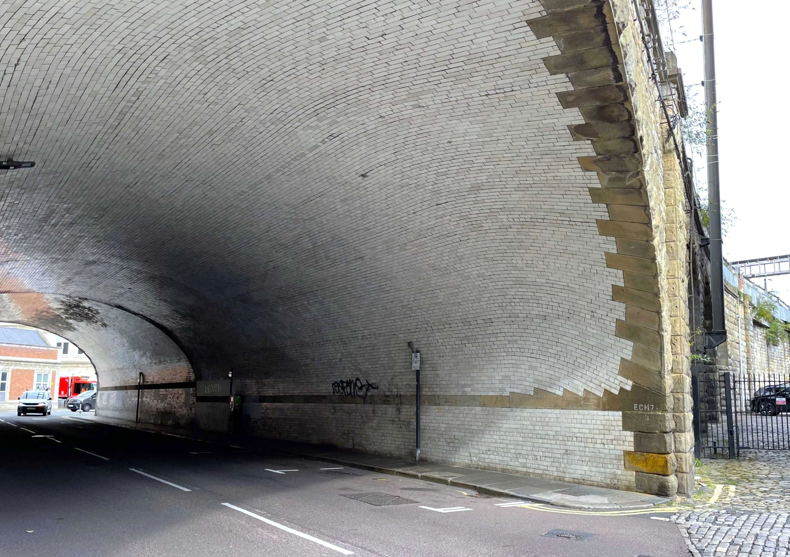 Tiled in white, Forth Street Underbridge on the East Coast Main Line, beneath Newcastle East Jn