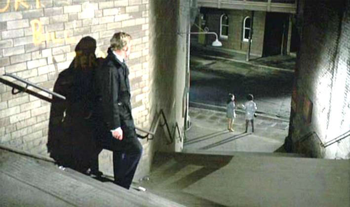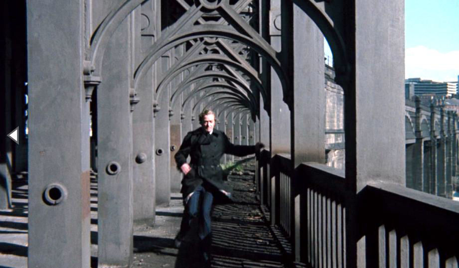 Trafalgar St is carried beneath the East Coast Main Line by a sloping, semicircular arched tunnel, built by the Newcastle & North Shields Railway (1839), with two pedestrian side tunnels linked to the main road by relieving arches. At the junction of Melbourne St and Trafalgar St, we found the first 'Get Carter' rail related location