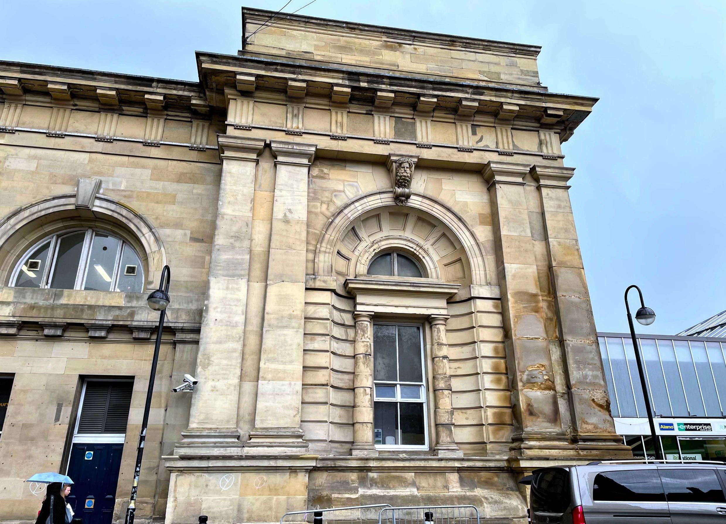 With a few spots of rain felt, the group descended down to River Tyne level to cross the hydraulic Swing Bridge, opened to road traffic in 1876. It also gave a great position to gauge the imposing height of the adjacent High Level Bridge. Next a challenge, steps back up 150ft to the entrance of Newcastle Keep. We took a breather half way up, where there was thankfully somewhere to briefly sit. At street level in front of the Keep, a Friday afternoon wedding party had spilled out of the Vermont Hotel for a photo. However, we kept going to find Forth St, the end of our day in sight. Forth St passes under the tracks with a white glazed brick lining. We stopped to see another remnant of the city wall and also the former Royal Mail sorting office, where the group was shown photos of the surviving tunnel that linked the sorting office and the platforms, once used to move mail and parcels.