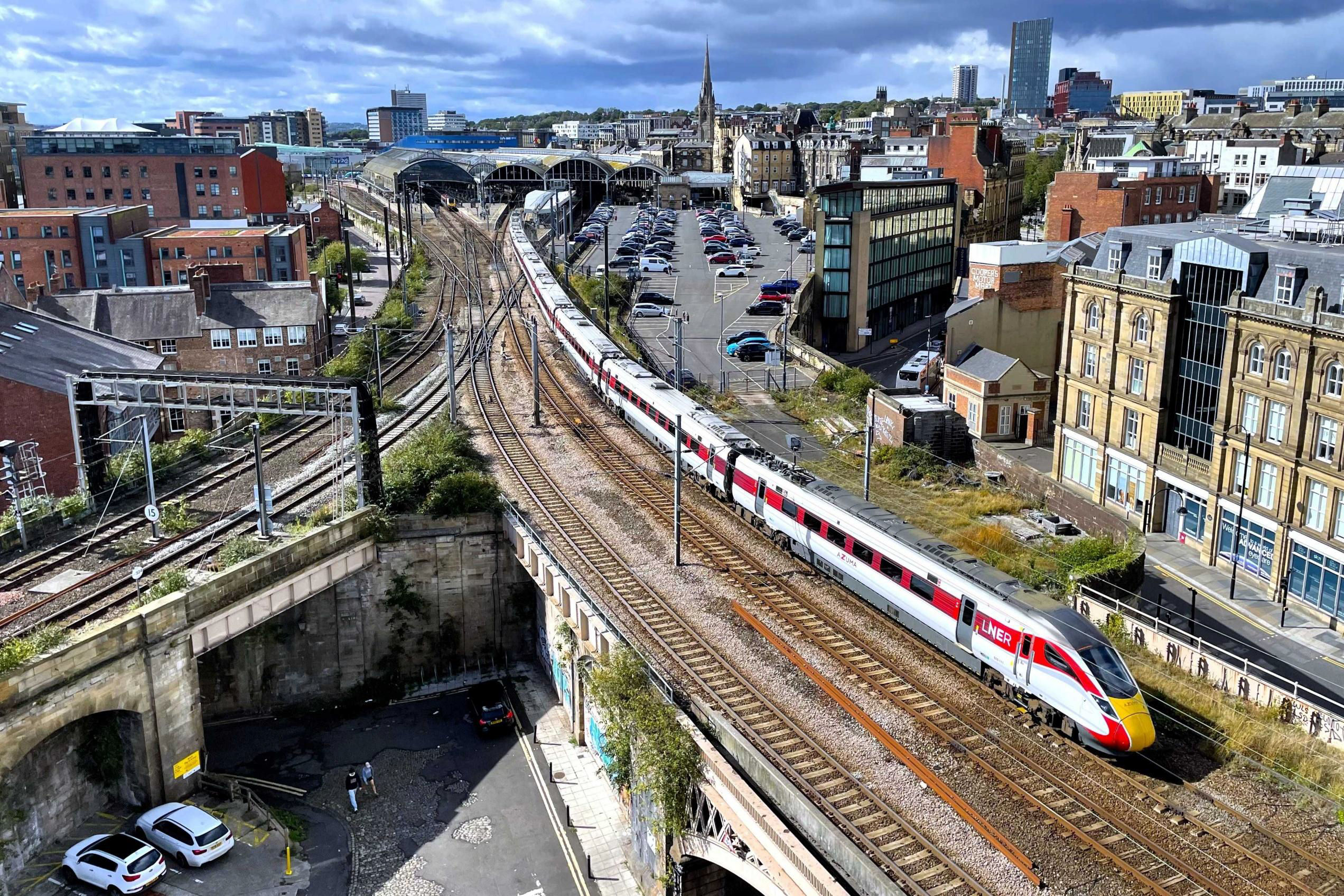 An Azuma leaving Newcastle Central northbound towards Edinburgh.