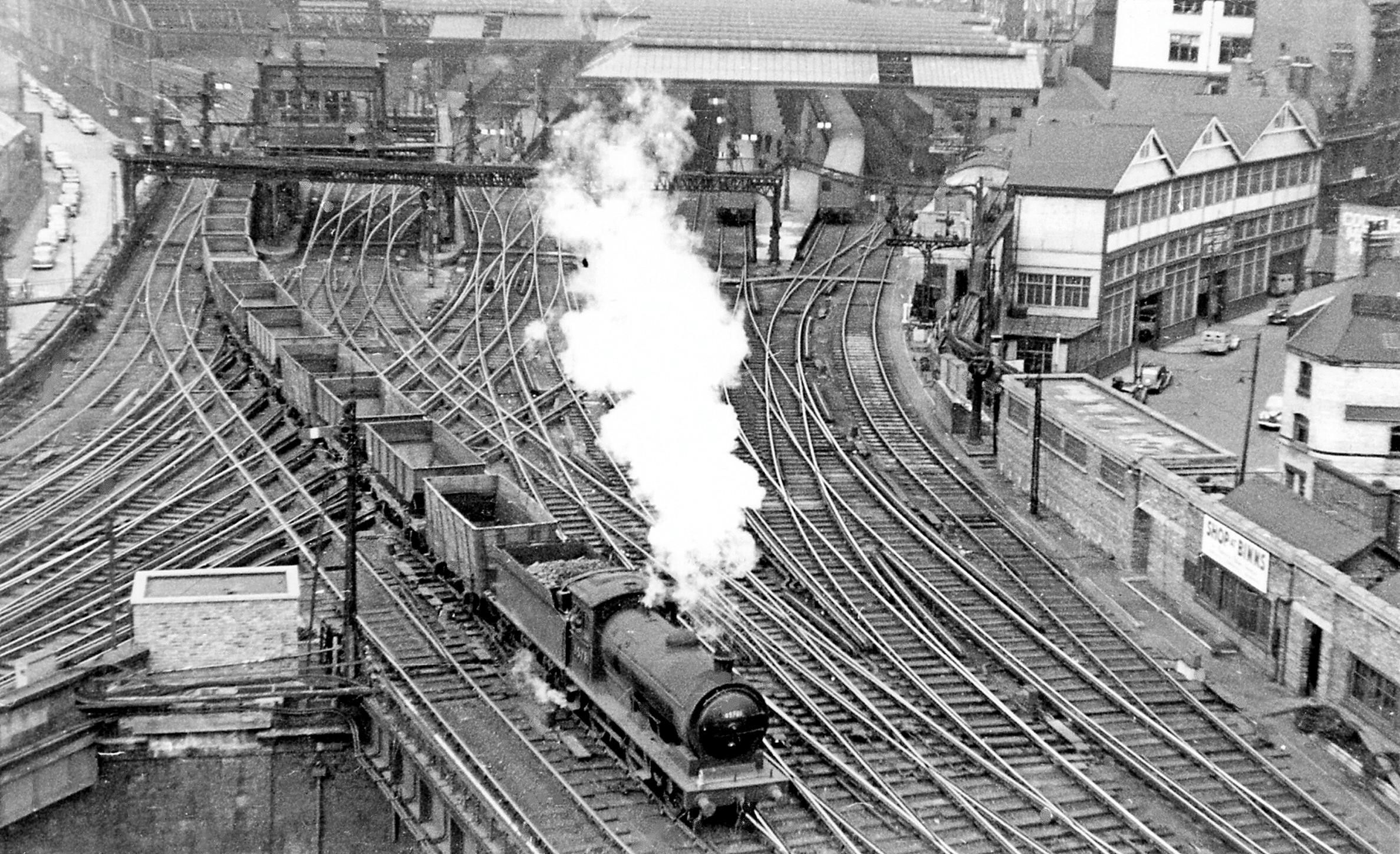How it used to be, with Tyneside third rail suburban EMUs in the bay platforms (right) too. (12 Jun 1954.)