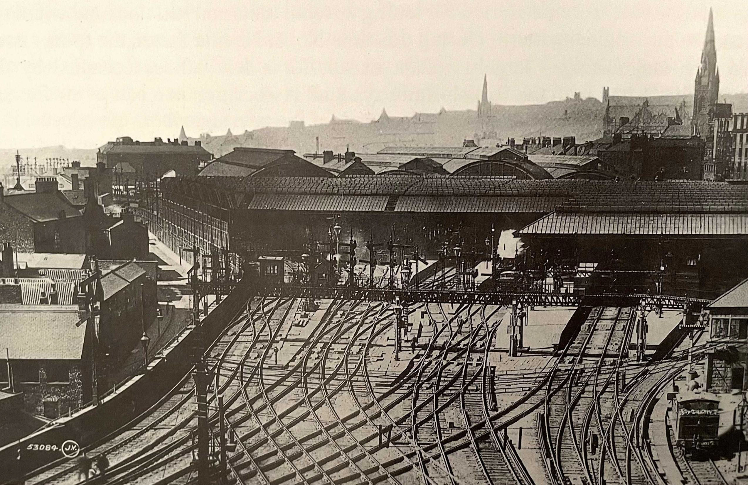 Said to have been taken after ''simplification in 1904 by the removal of the connections from the High Level Bridge to P1, 2 (right hand north end Down bays) and the Carriage Dock. The 1893 to 1909 Newcastle No1 box can be seen on the right".(Thanks to Adam Turner.)