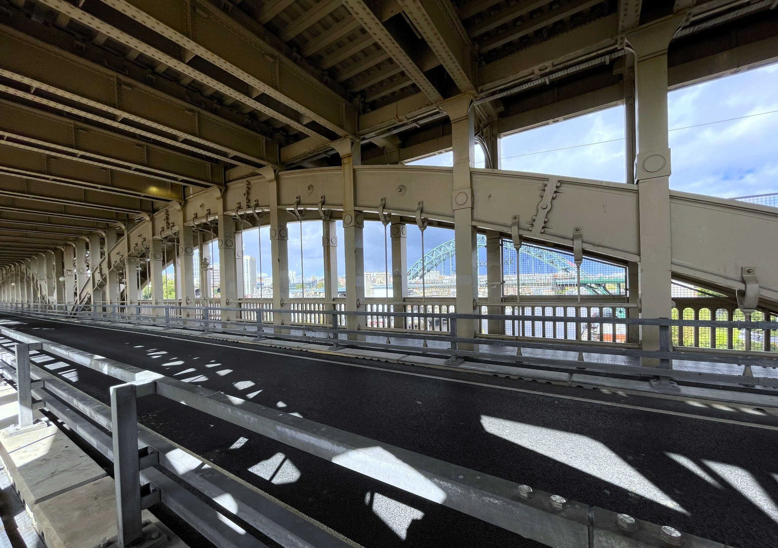 High Level Bridge with strengthening hangers and rods to take the weight of trams on the road and nowadays, buses.