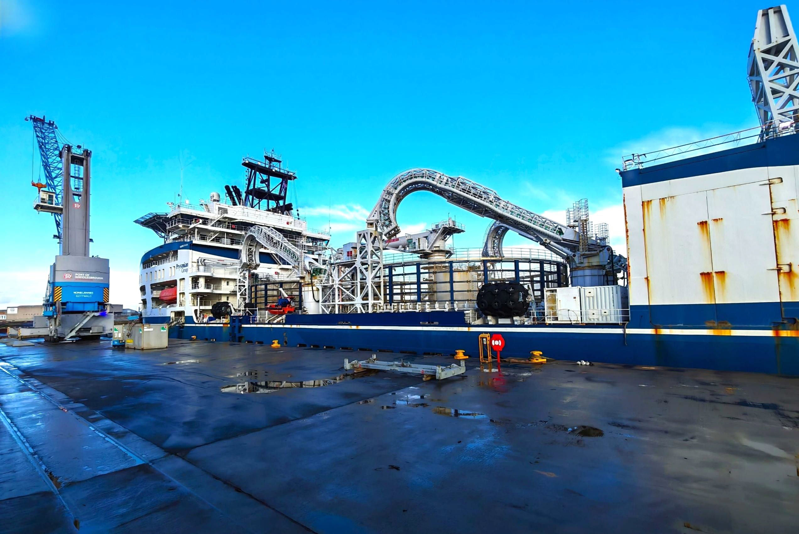 'Leonardo Da Vinci' from Napoli; the largest cable laying ship in the world - taken from Molly on the little used wharfside branch