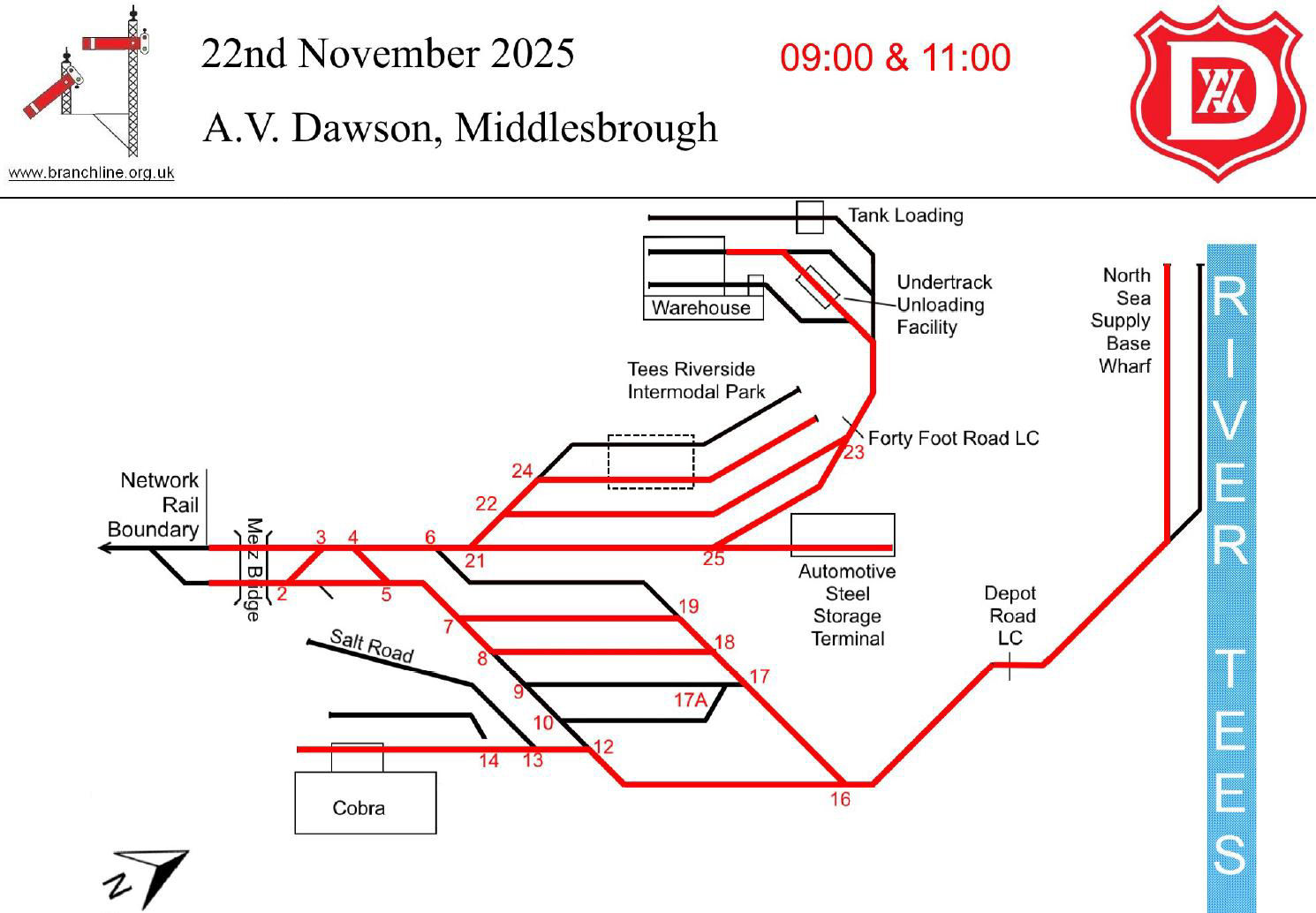 The three fully booked 2025 AGM trips (two 'track & traction', the third traction) carried 156 members and contributed to the £5,500 donated to the Friends of the Stockton & Darlington Railway as a result of our AGM weekend. It will be used towards restoration of the original Heighington station building, now owned by the Friends, which has a strong case as the world's first railway station. Another BLS first followed, a working lunch, kindly provided by AV Dawson in their conference centre lecture theatre with balcony views of Leonardo Da Vinci (the ship!), the River Tees and Middlesbrough Transporter Bridge.
