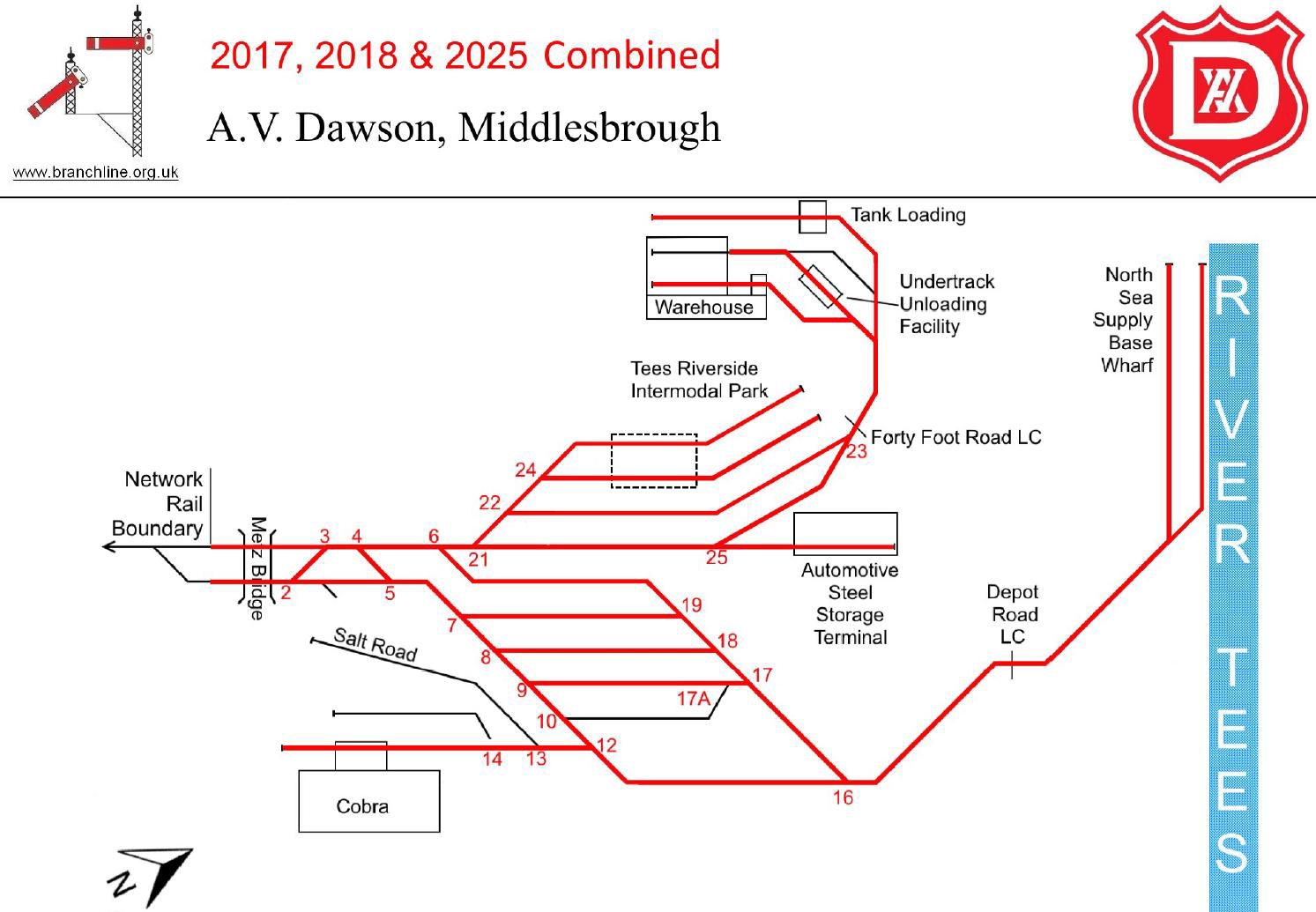 A longstanding member considered 08600 was his most difficult BR loco to 'cop' as it spent virtually the whole of its operational life as the Slade Green Depot shunter. That Depot is in the middle of nowhere, so 08600 was his last BR loco for sight. He finally copped it - and filled his 1976 Ian Allan book - during our first BLS visit to AV Dawson on 5 May 1989. Our three most recent AV Dawson Railtours (2017, 2018 2025) have accumulated almost total coverage of their rail system - see marked up plans.