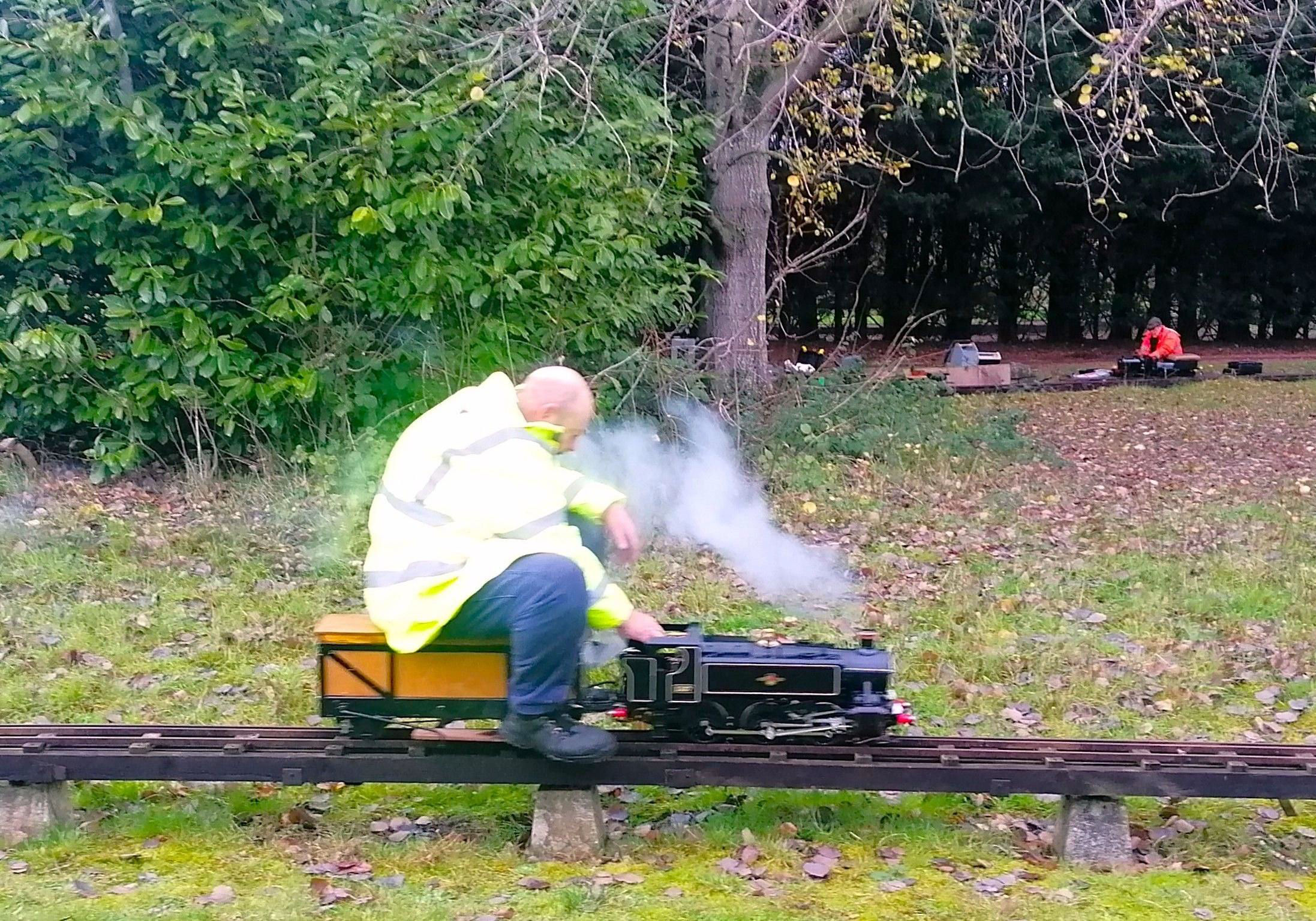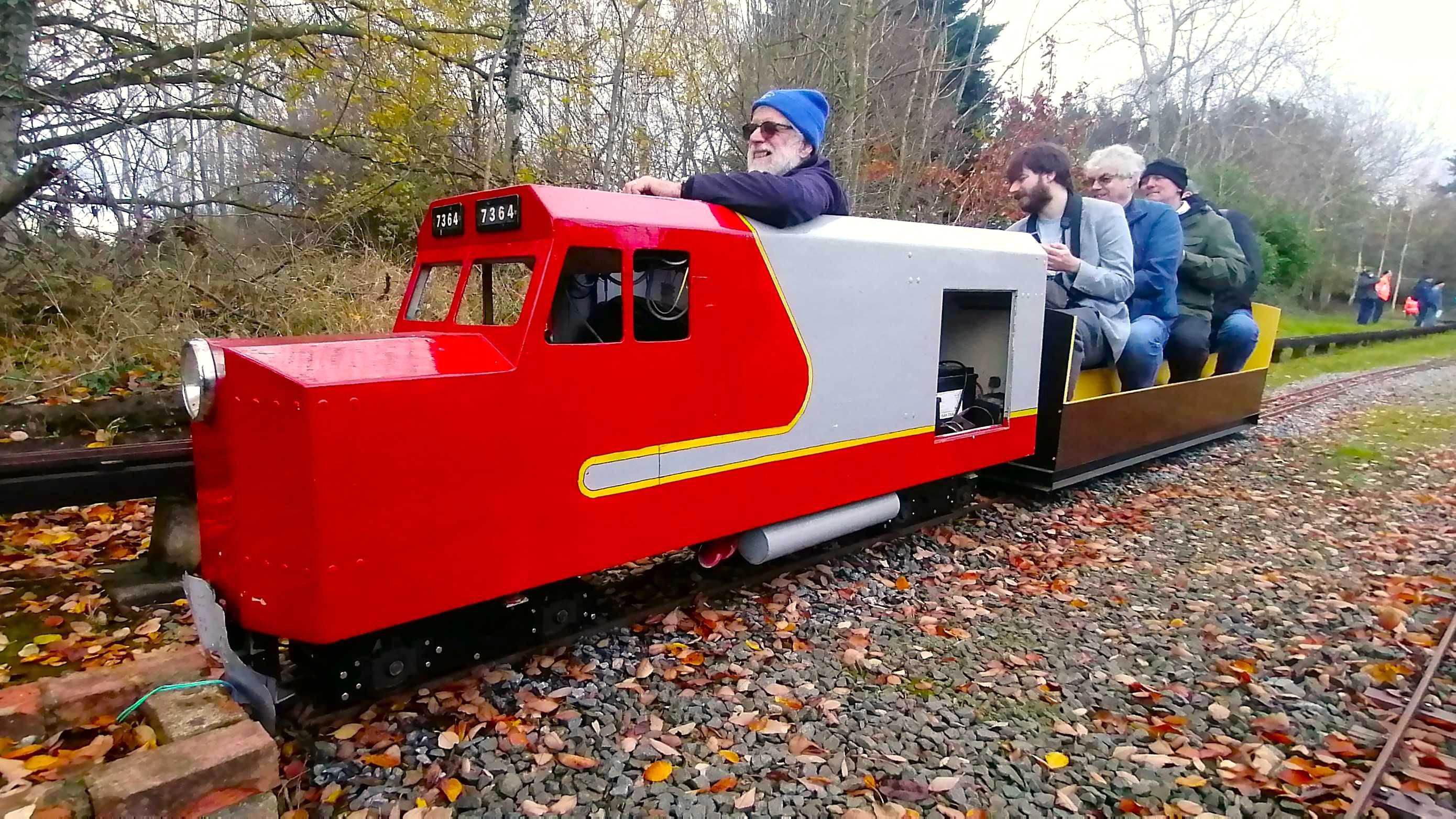 As the miniature locos could only haul a few people at a time, our 20 members split into groups, so that everyone could cover all the available track. This worked well, including some who arrived at the advertised time (after having lunch); they could ride areas we'd already covered. In fact, we needed the earlier start as everyone only just managed to do it all before the late autumn evening drew in on us.