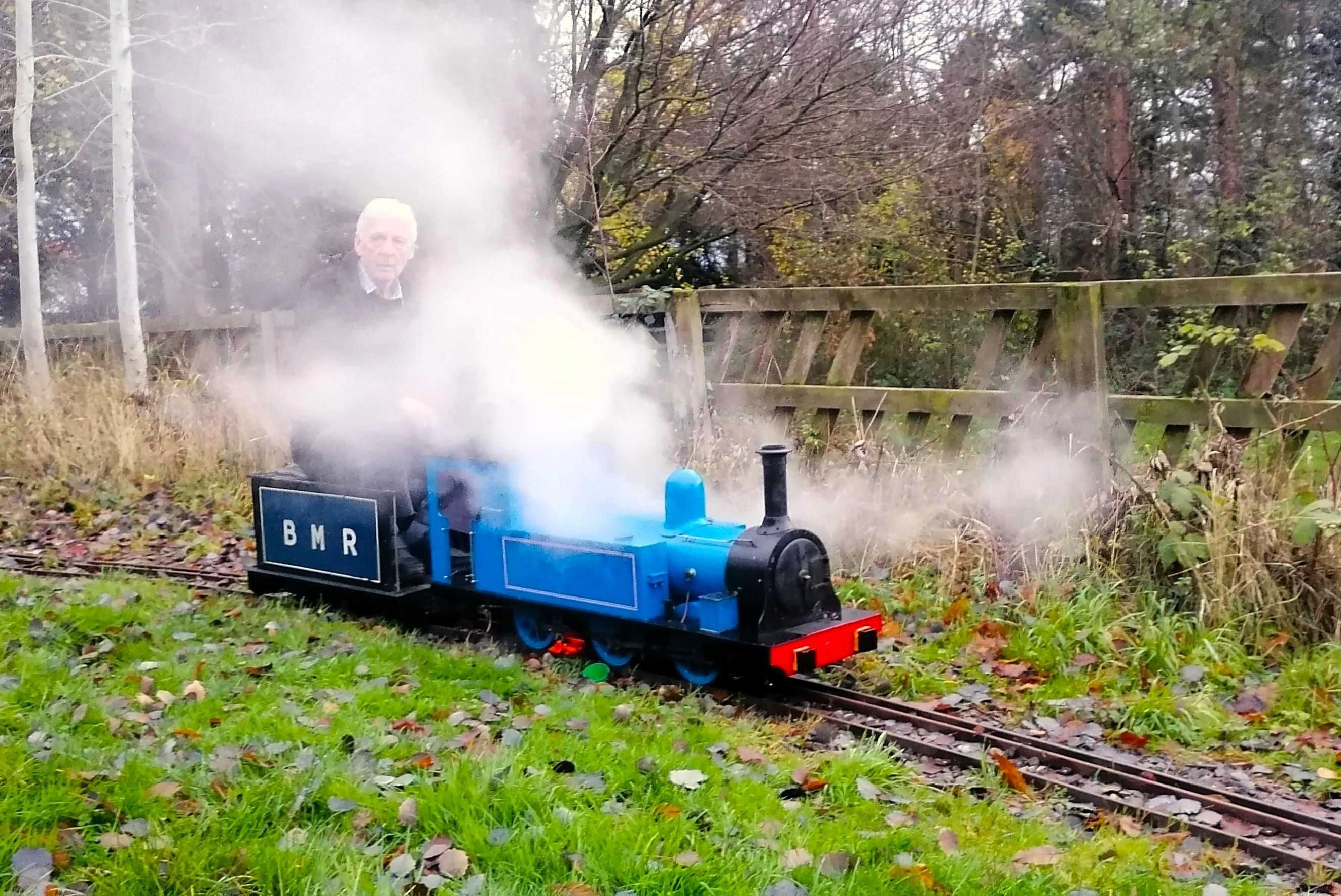 Finally, we also managed to cover the extremely rare elevated (3½/5" gauge) circuit. There were no riding vehicles for this, which never has public running. A volunteer from TSGR had brought a steam loco to demonstrate the line, with a ride-on trolley (which he sat on to drive it). So, we asked if we could borrow the trolley and, in BLS tradition, one-by-one we completed the track with people power. It was a great end to a comprehensive and very friendly visit. Their volunteers enjoyed it as much as we did; thanks to John Cameron for organising this event and to everyone involved with our AGM weekend.
