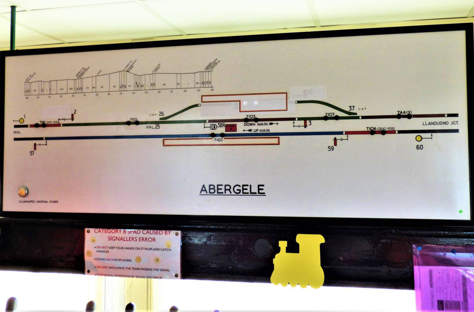 As with all the block-posts visited, standard British Rail (BR) Block Instruments were used for Absolute Block (AB) working in both directions. While most of the group were familiar with lever collars, used to disable levers (temporarily or permanently), the steel oval design of collar - unique to the LNWR design frames, was a first for most of us! We were also introduced to another new concept to some of us: The Pale Green Dot! In general these small stickers are used to indicate equipment that is to be to be salvaged for reuse (or a museum!) when boxes are decommissioned. On 23 Apr 1967 Abergele - Foryd Jn Up Slow closed (some became the Up Platform Loop/siding) and Foryd Jn to Rhyl on 31 May 1970.